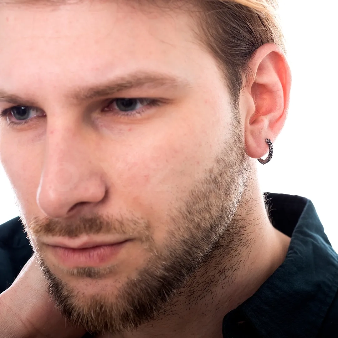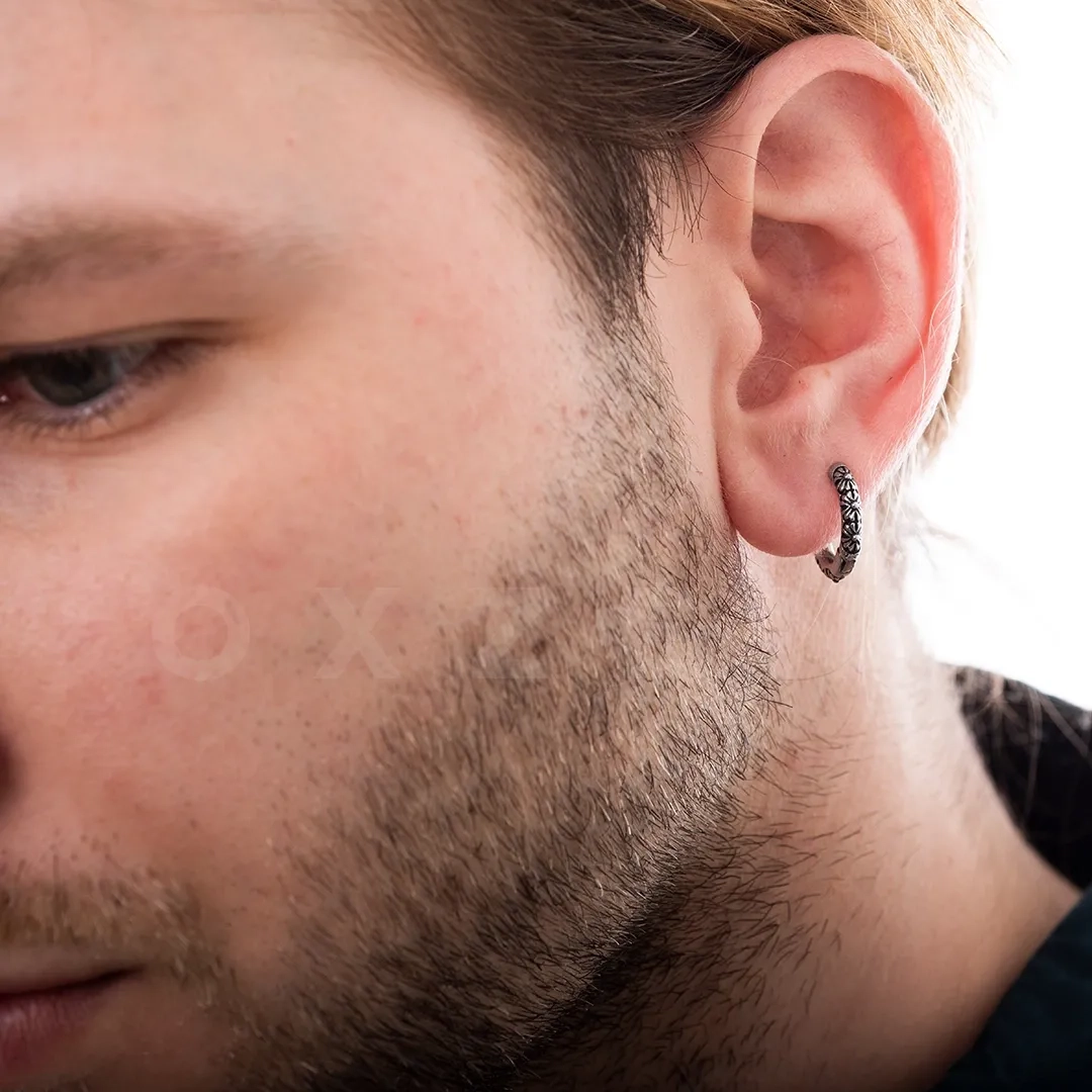 Σκουλαρίκι ανδρικό από ανοξείδωτο ατσάλι, κρίκος αντικέ με σχέδιο 10mm