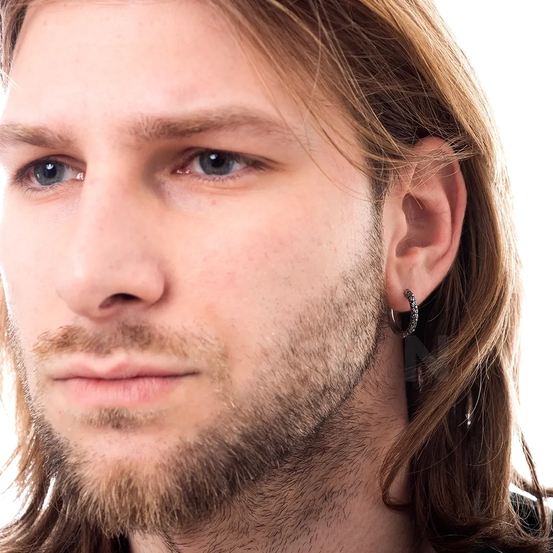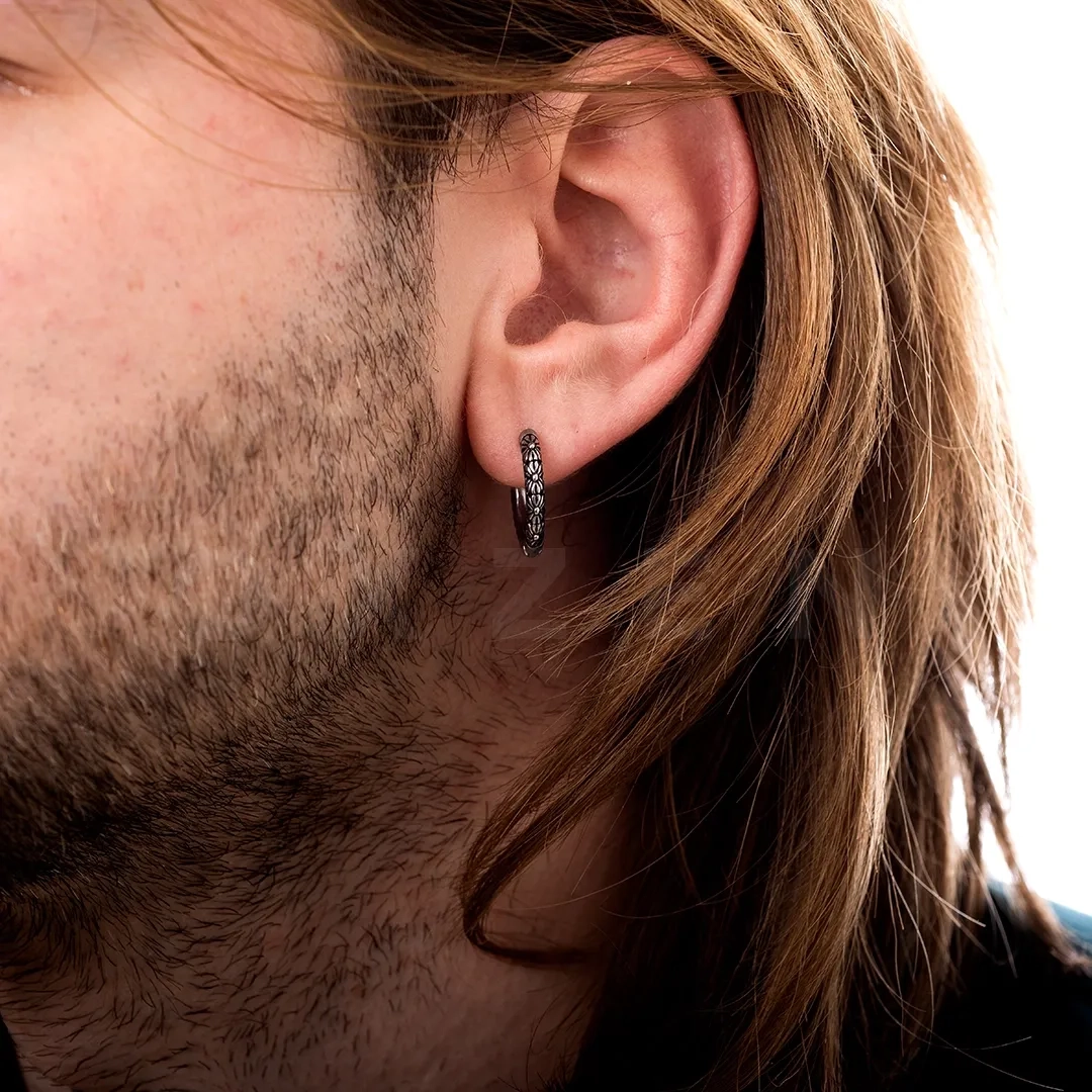 Σκουλαρίκι ανδρικό από ανοξείδωτο ατσάλι, κρίκος αντικέ με σχέδιο 14mm