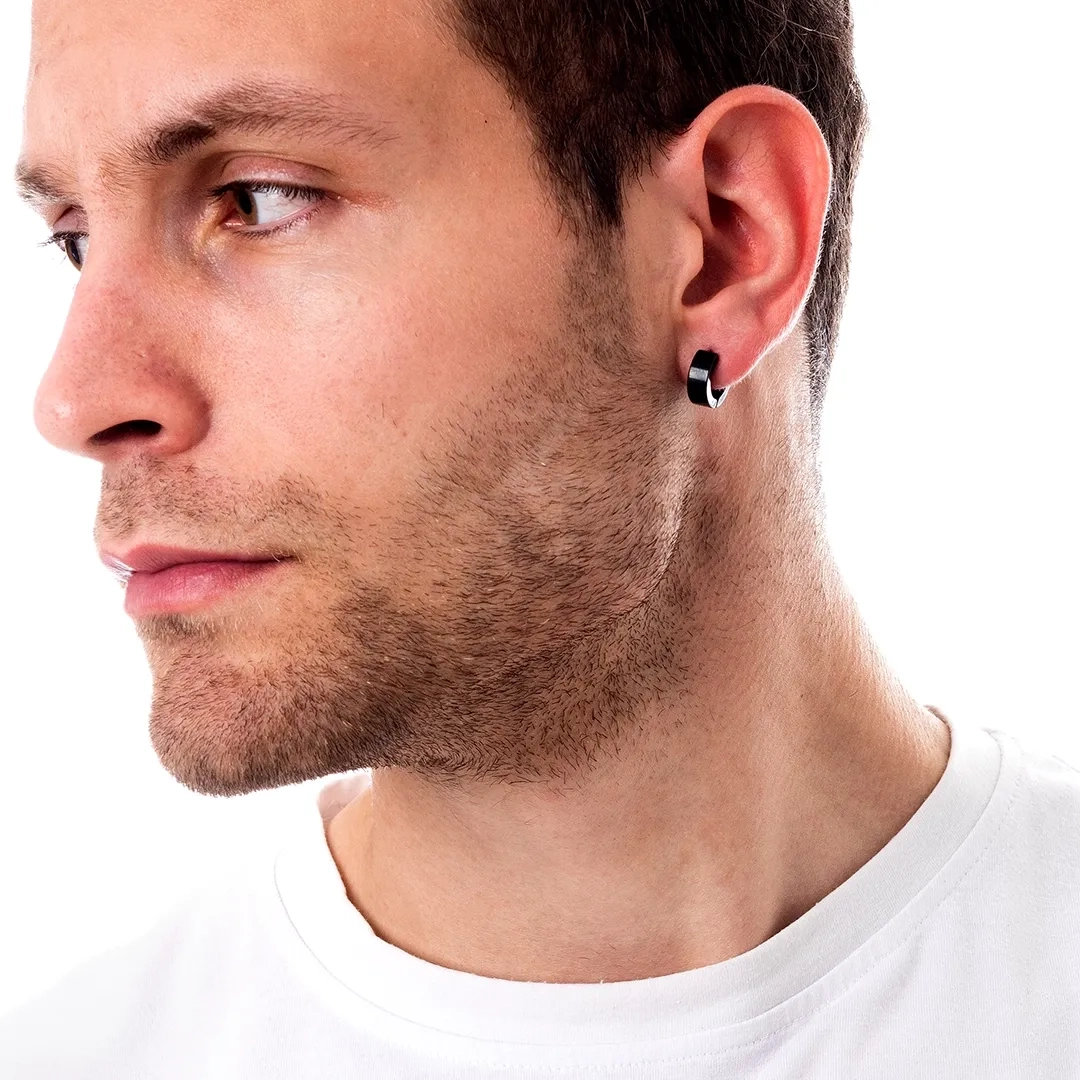 Σκουλαρίκι ανδρικό από ανοξείδωτο ατσάλι μαύρο κρικάκι (5 x 10)mm