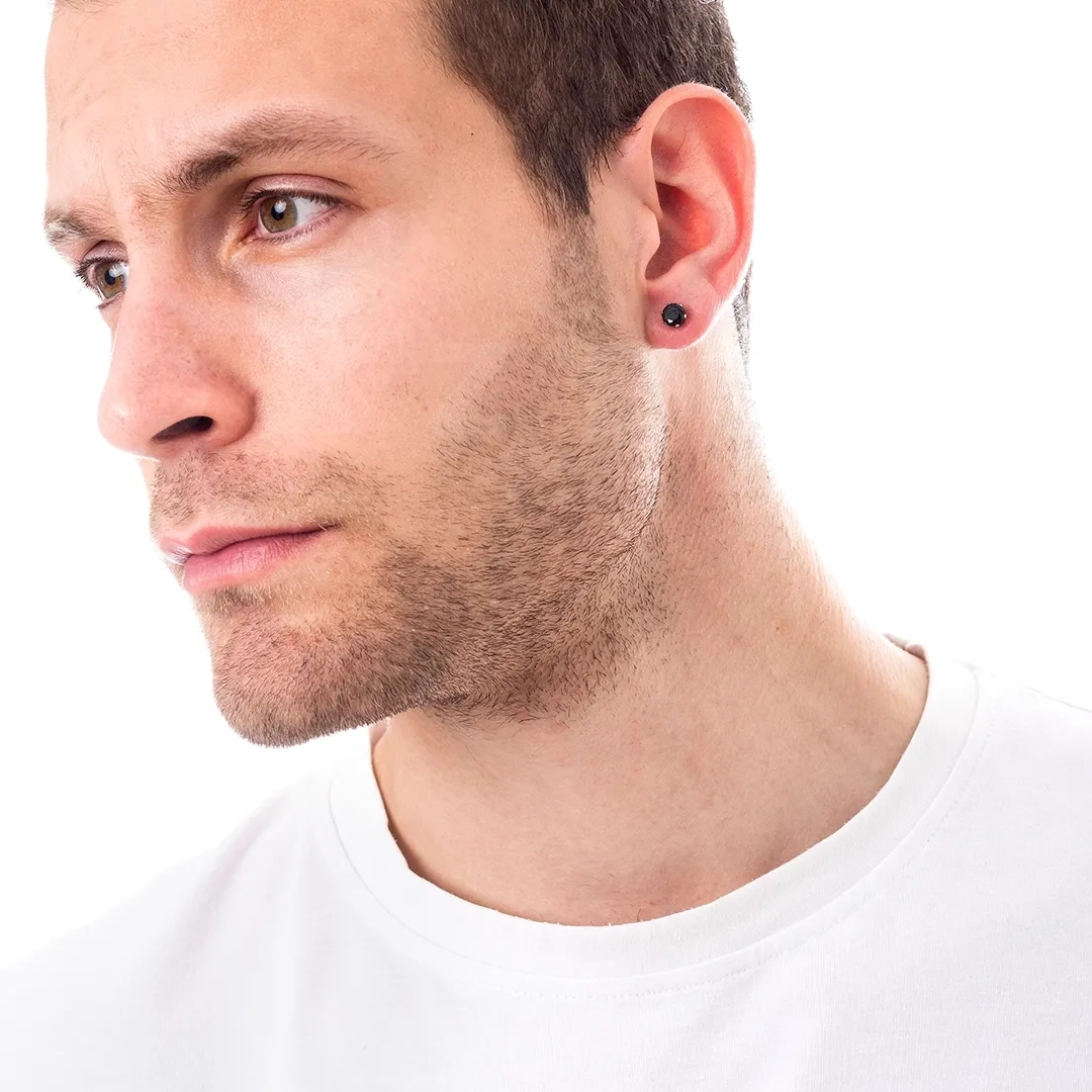 Σκουλαρίκι ανδρικό από ανοξείδωτο ατσάλι με στρογγυλή μαύρη πέτρα ζιργκόν 3mm