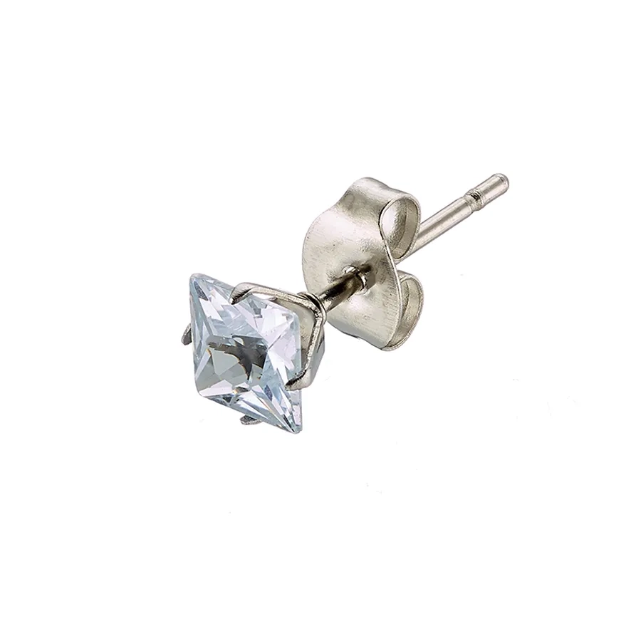 Σκουλαρίκι ανδρικό από ανοξείδωτο ατσάλι με τετράγωνη λευκή πέτρα ζιργκόν 3mm