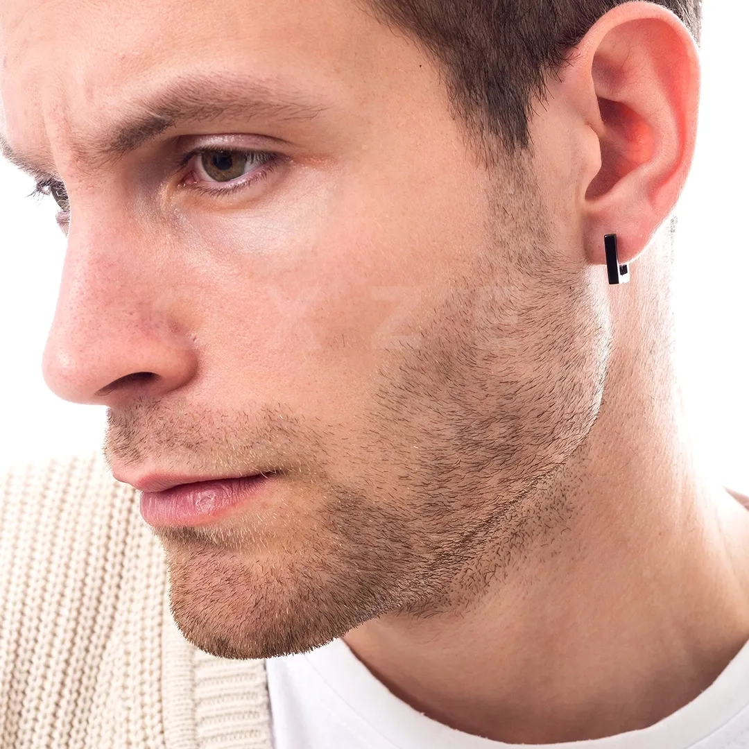 Σκουλαρίκι ανδρικό από ανοξείδωτο ατσάλι, τετράγωνος κρίκος