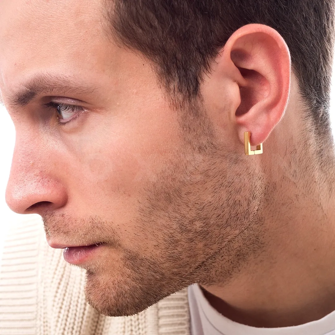 Σκουλαρίκι ανδρικό από ανοξείδωτο ατσάλι, τετράγωνος κρίκος