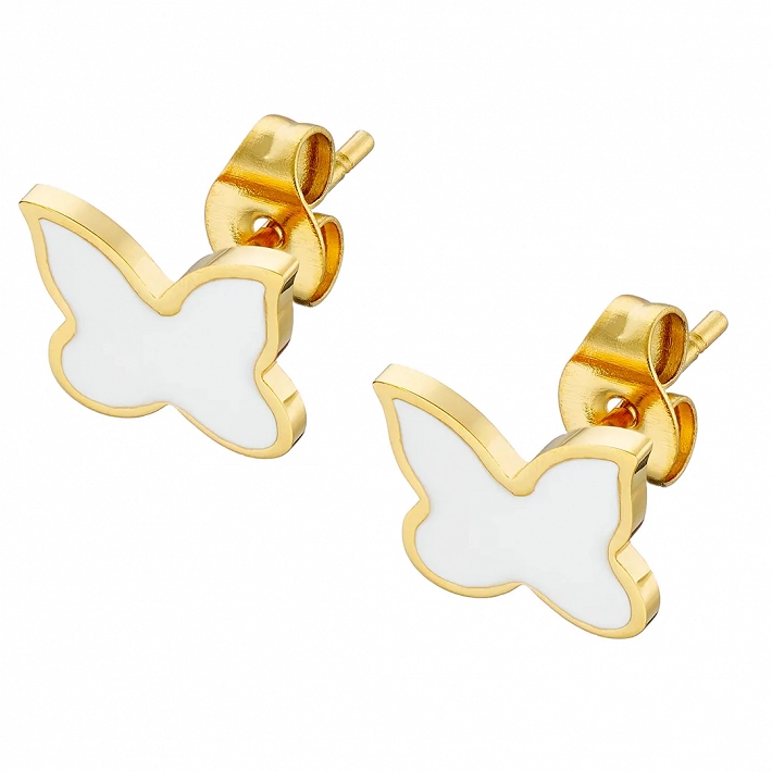 Σκουλαρίκια καρφωτά ατσάλινα επιχρυσωμένα πεταλούδα με σμάλτο