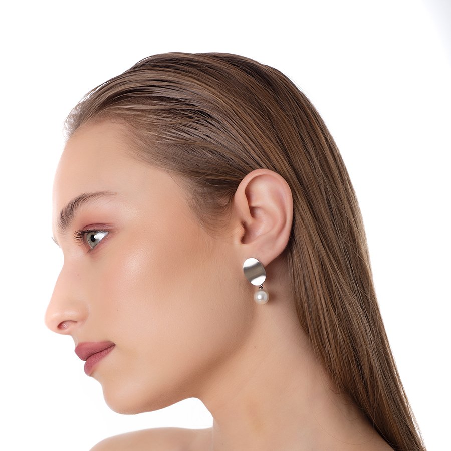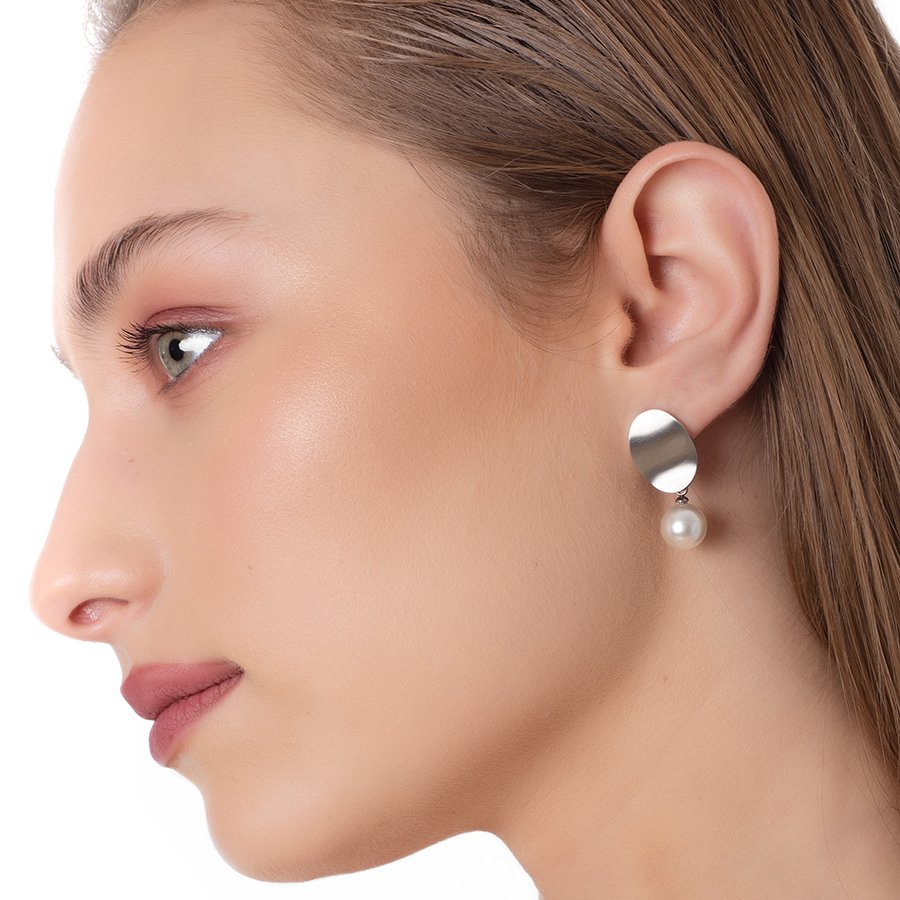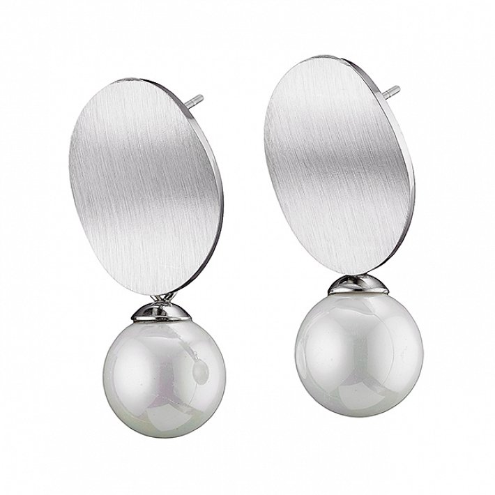 Σκουλαρίκια κρεμαστά ατσάλινα με πέρλα