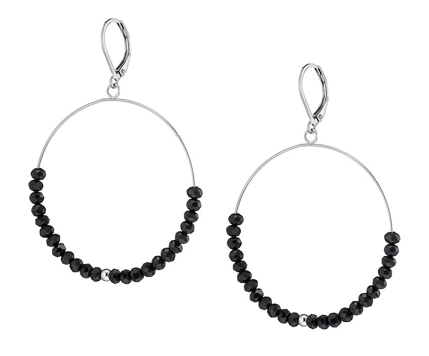 Σκουλαρίκια κρεμαστά ατσάλινα με πέτρες μαύρο σπινέλιο