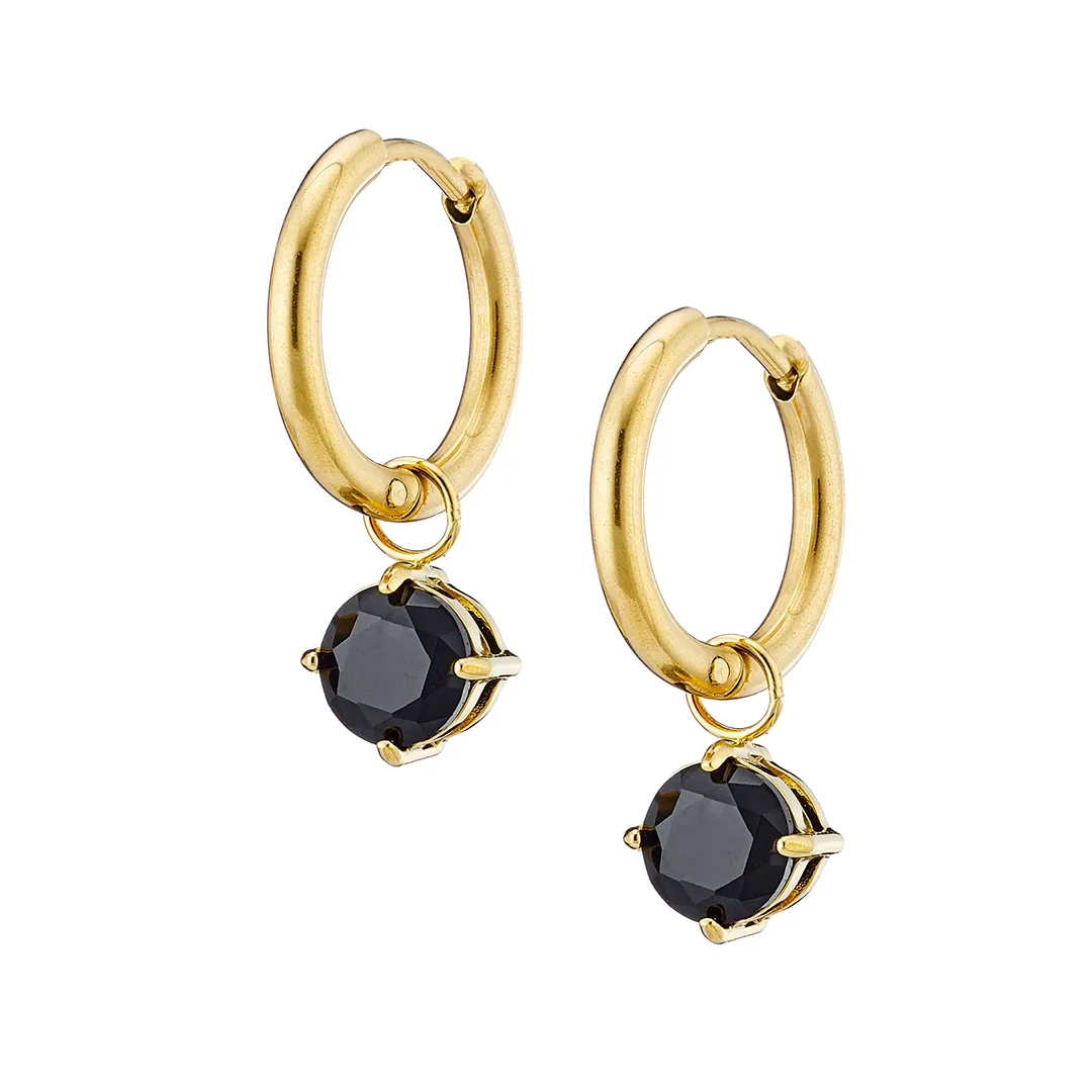 Σκουλαρίκια κρικάκια μικρά ατσάλινα 12mm με ένα κρεμαστό μαύρο ζιργκόν