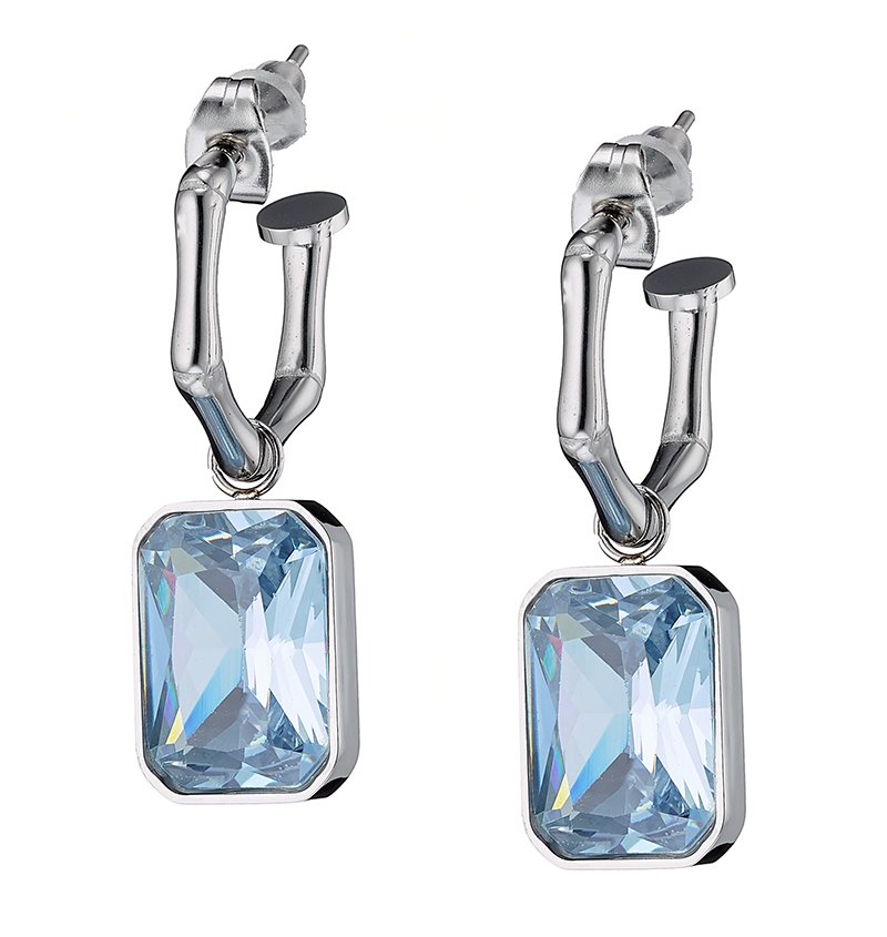 Σκουλαρίκια κρίκοι ατσάλινοι με λευκή πέτρα ζιργκόν