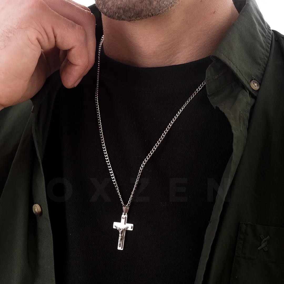 Κολιέ σταυρός με αλυσίδα αντρικός ατσάλι