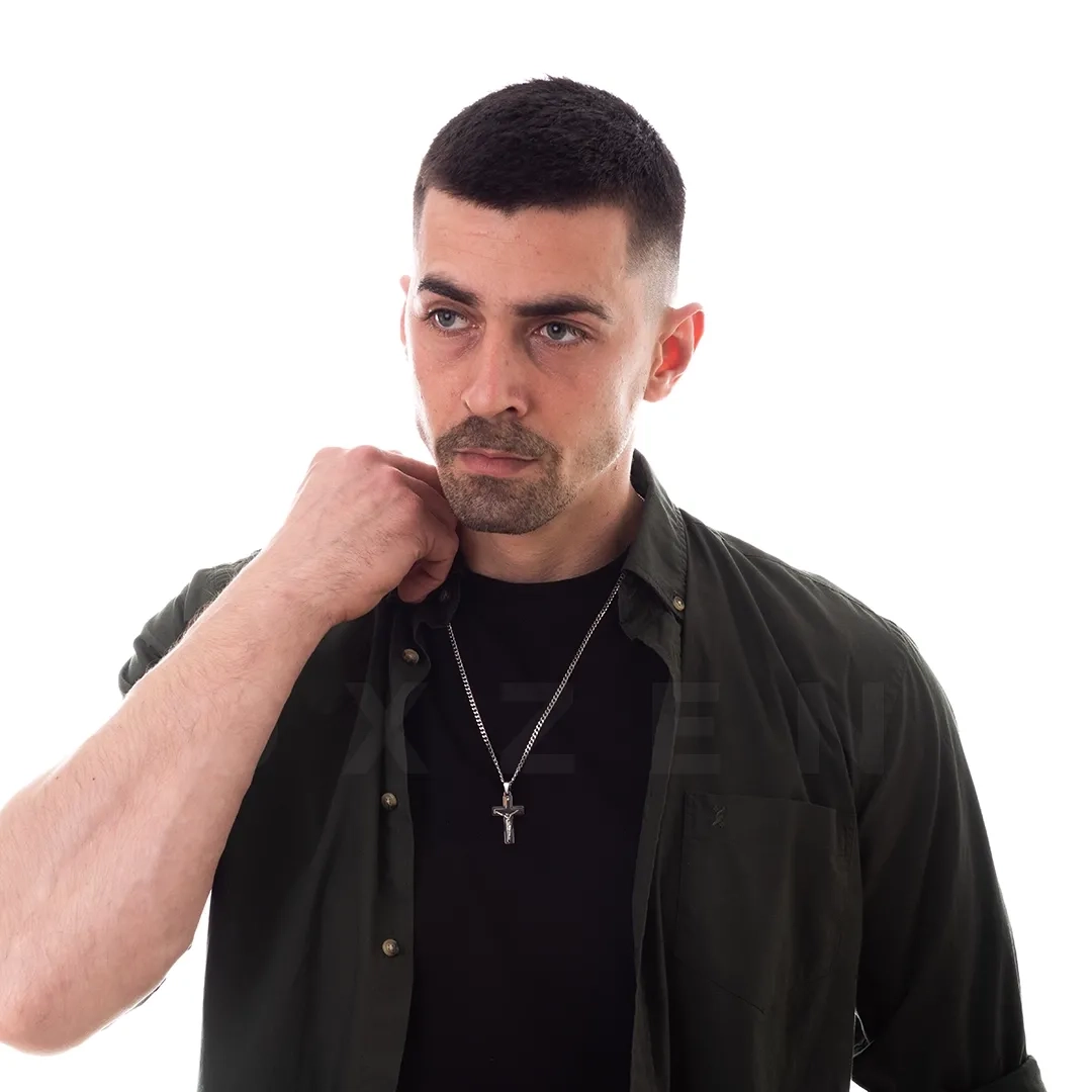 Κολιέ σταυρός αντρικός ατσάλι σε ασημί με μαύρο