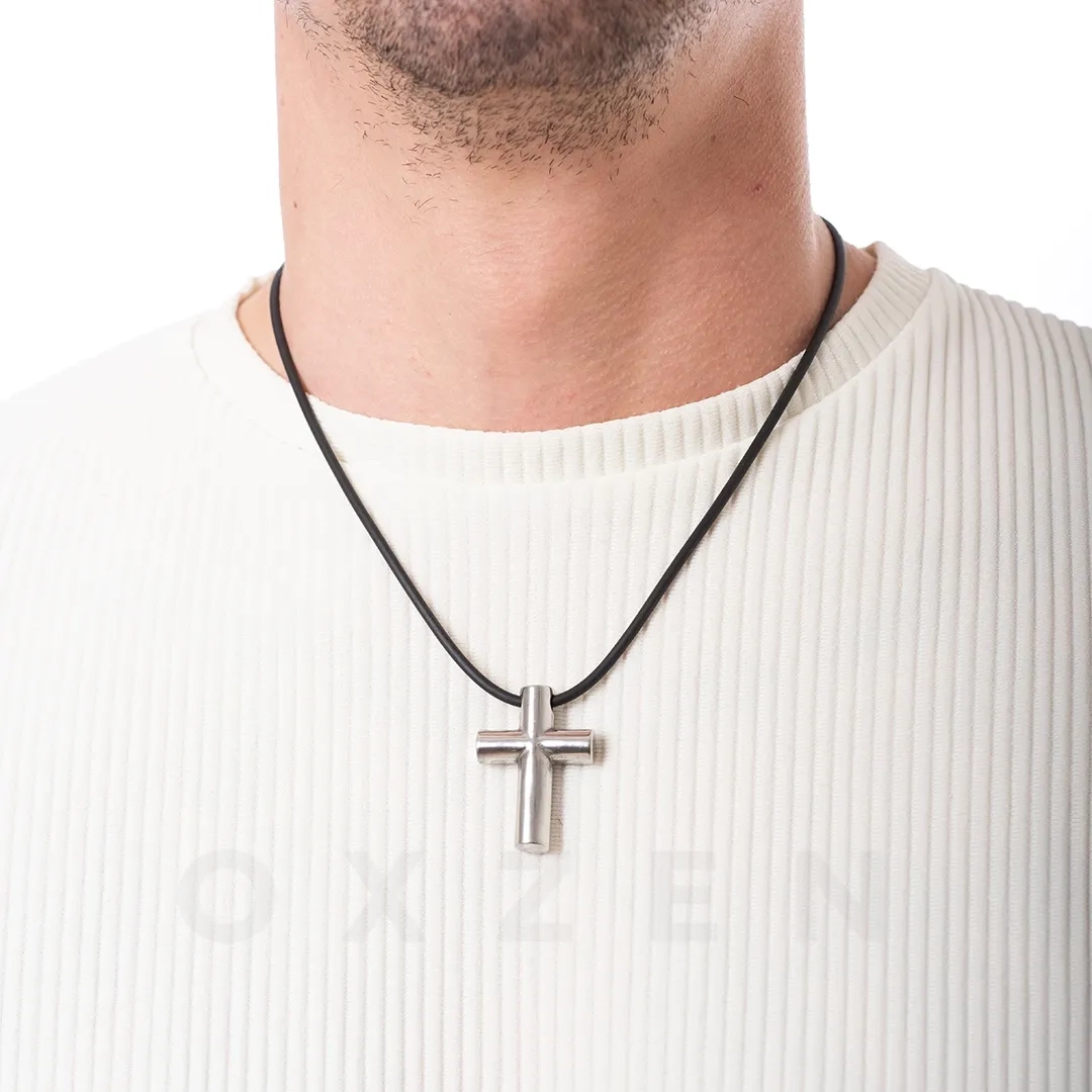 Σταυρός ατσάλι με καουτσούκ λουράκι