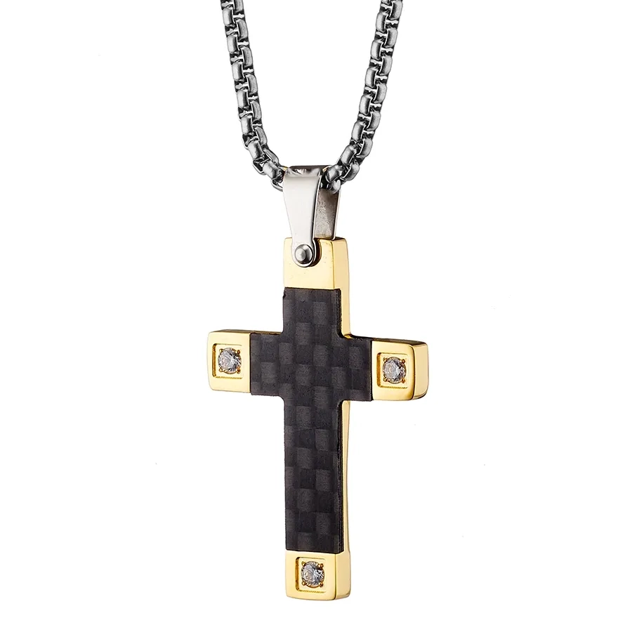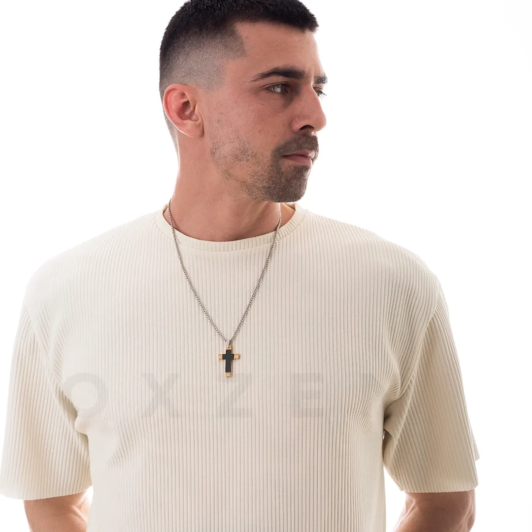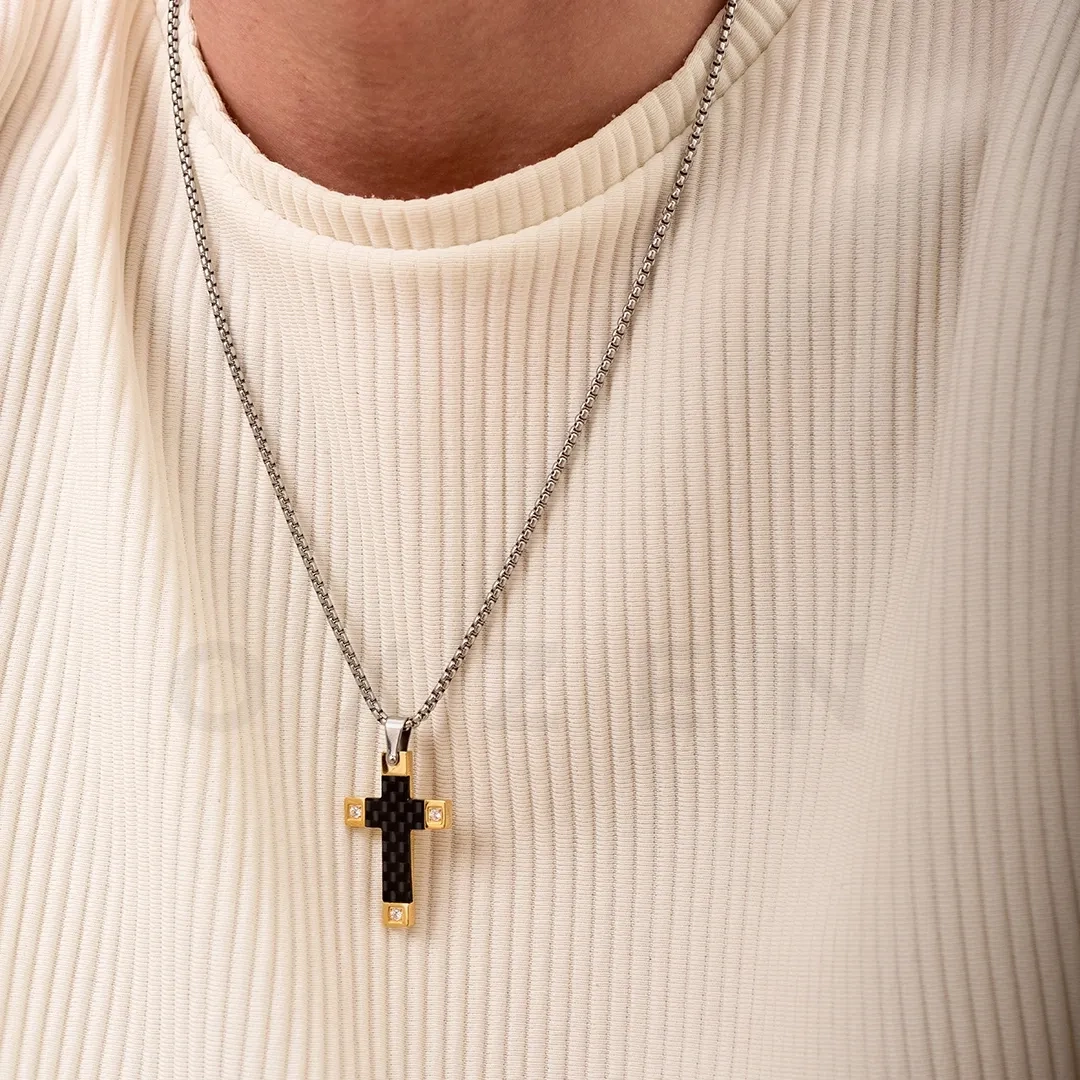 Κολιέ σταυρός αντρικός ατσάλι σε ασημί με μαύρο