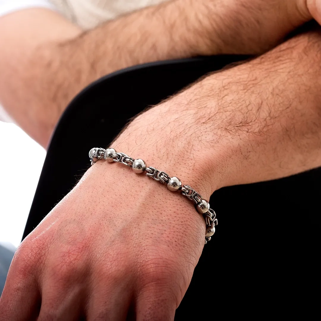 Βραχιόλι ανδρικό από ανοξείδωτο ατσάλι ασημί με μπίλιες