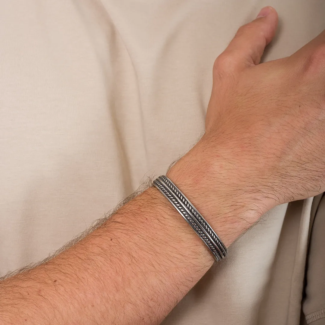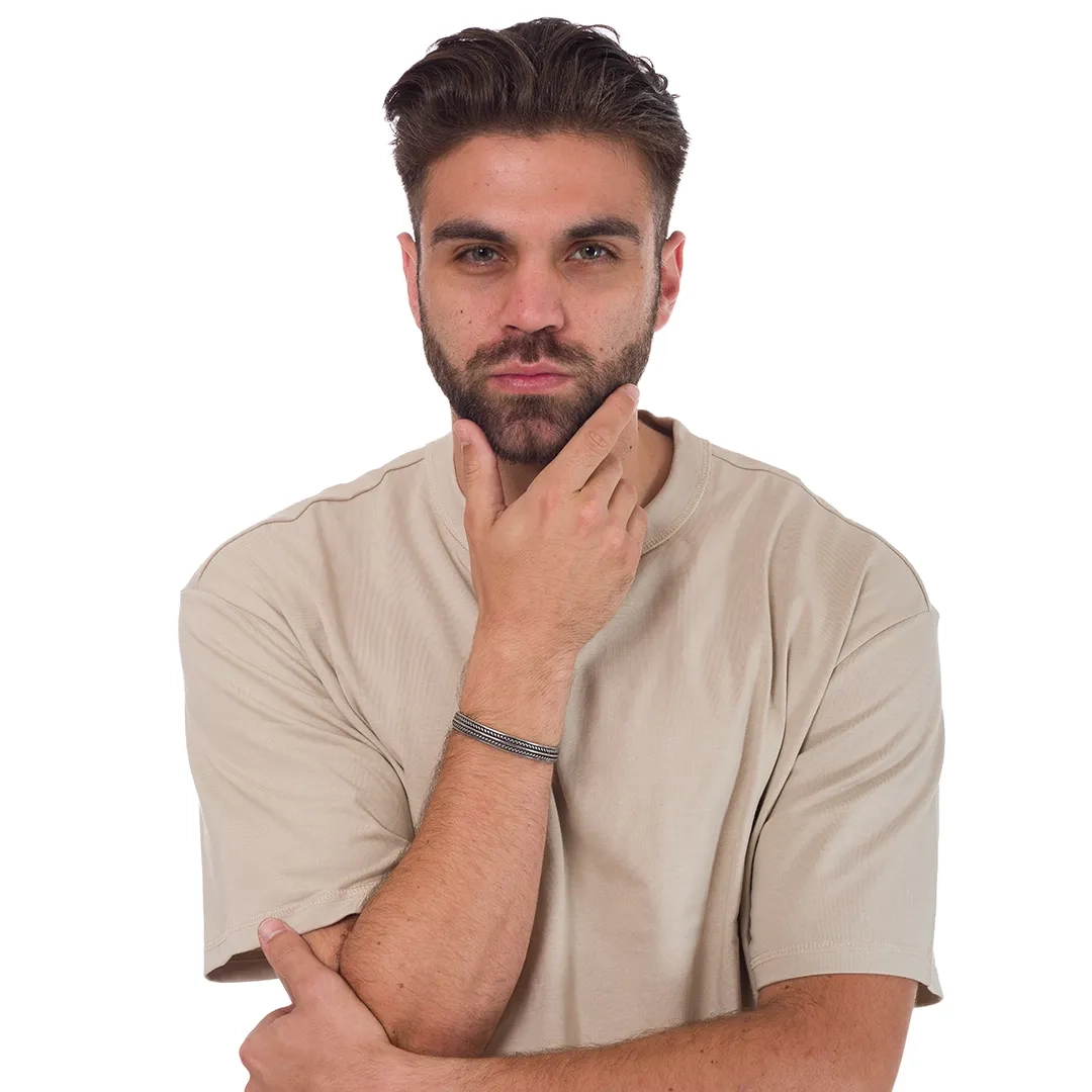 Χειροπέδα ανδρική ατσάλι σε ασημί με μαύρο
