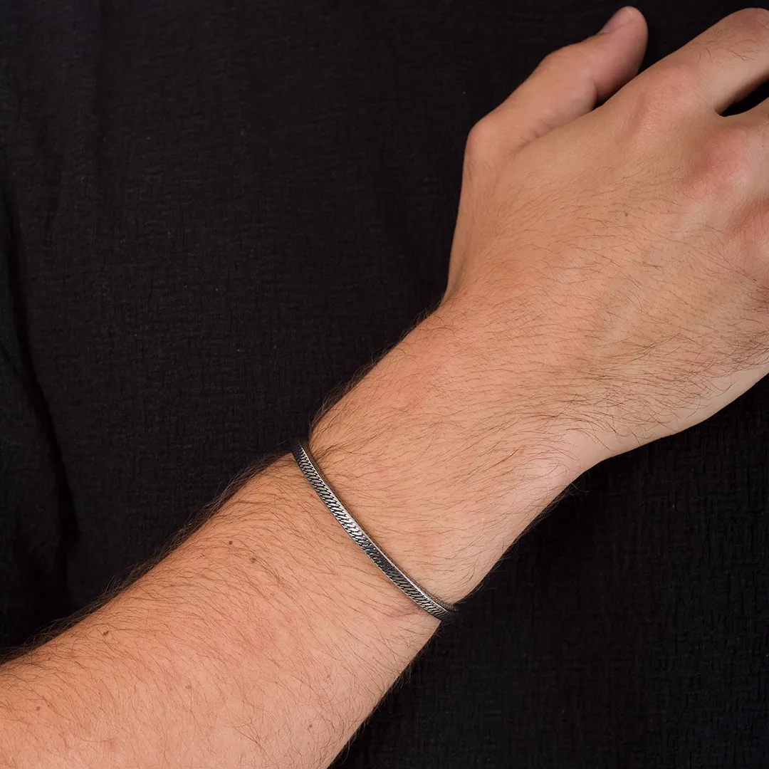 Χειροπέδα ανδρική ατσάλι σε ασημί με μαύρο