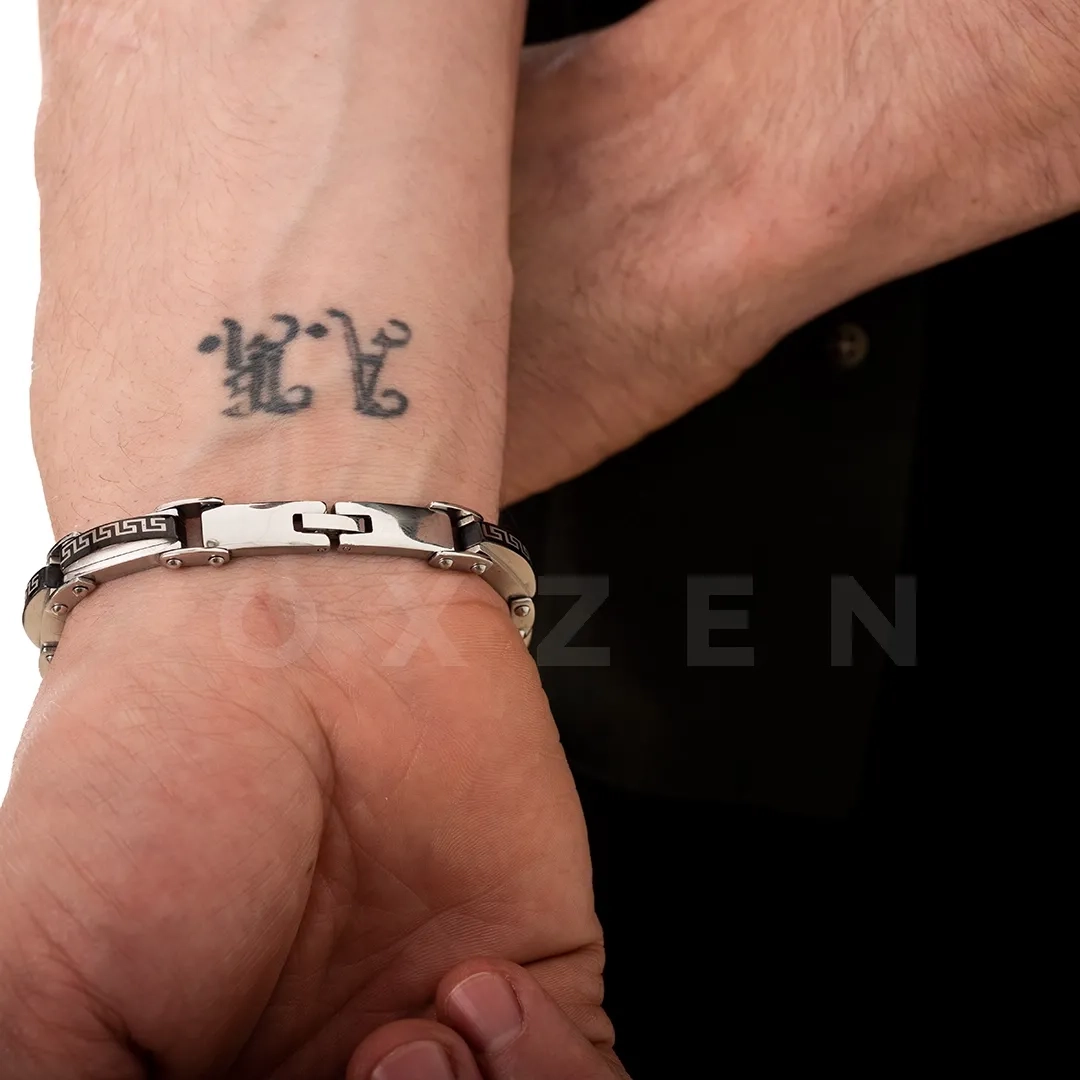Χειροπέδα ανδρική ατσάλι σε ασημί με μαύρο