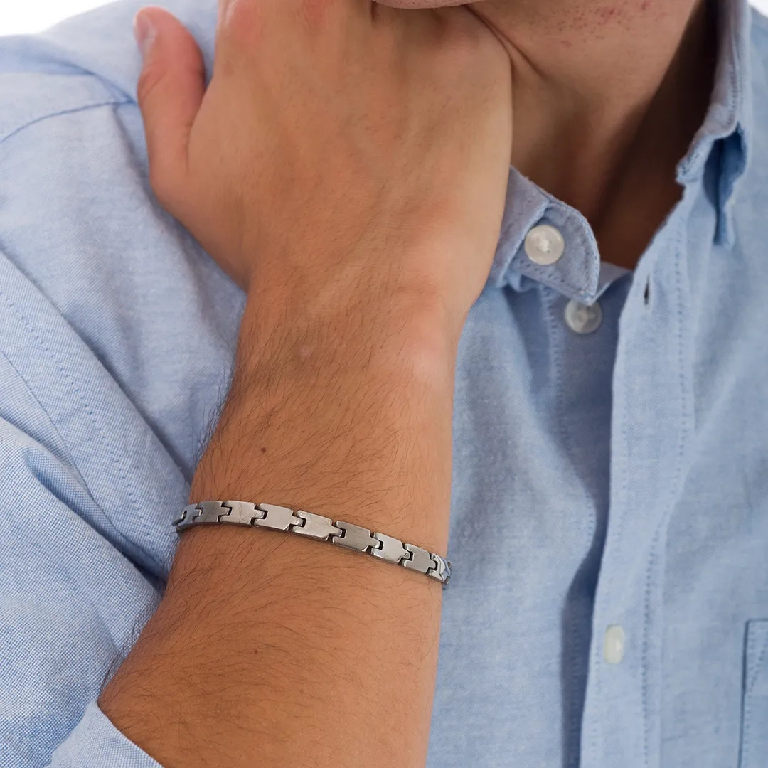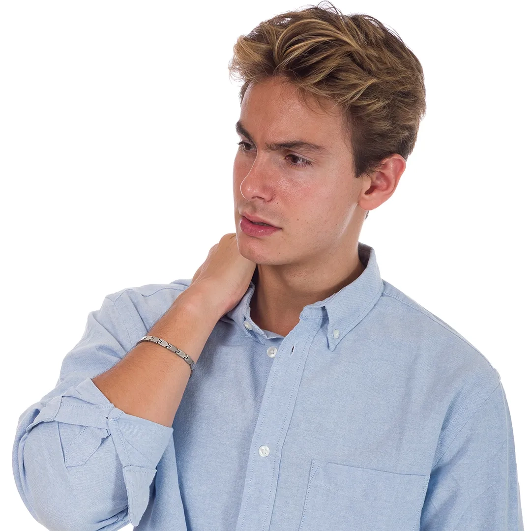 Βραχιόλι ανδρικό από ανοξείδωτο ατσάλι σε ασημί με μικρά κομμάτια