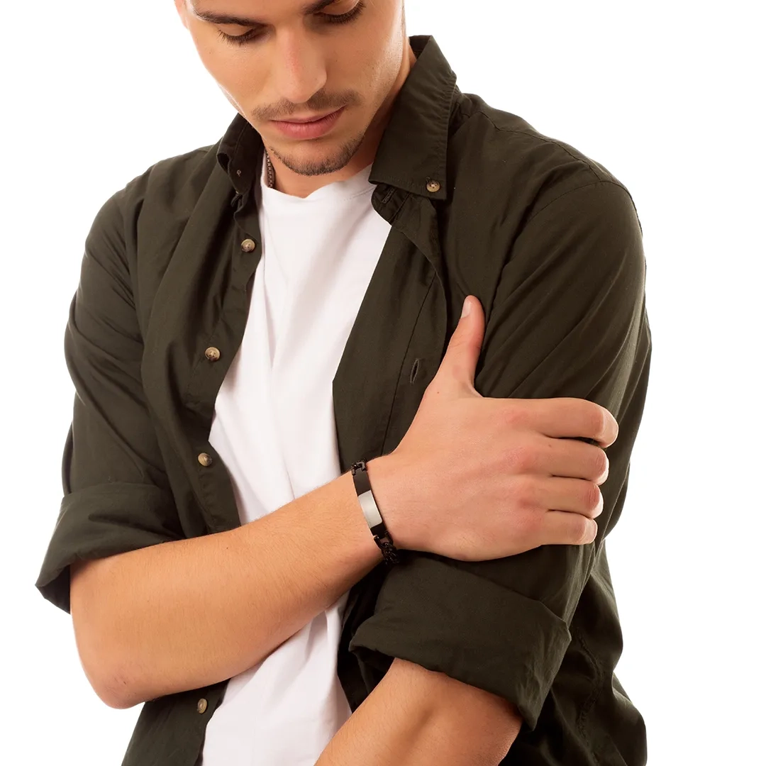Χειροπέδα ανδρική ατσάλι σε ασημί με μαύρο