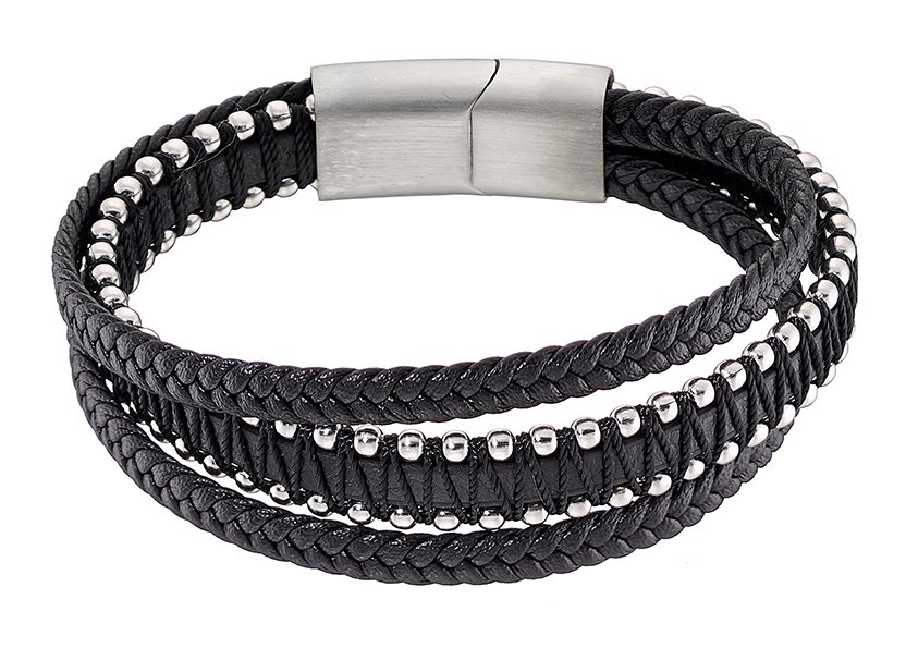 Βραχιόλι ατσάλινο με δέρμα μαύρο και κούμπωμα μαγνήτη