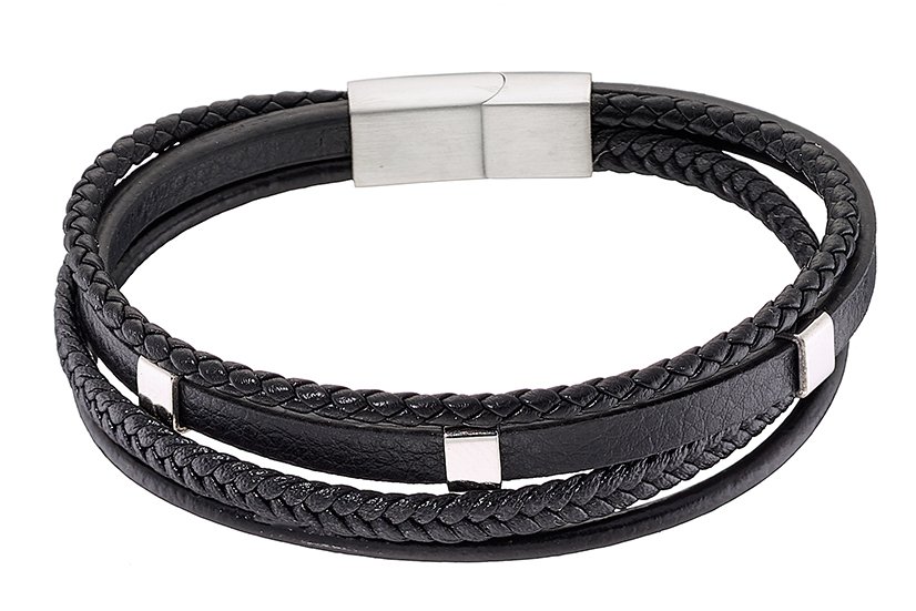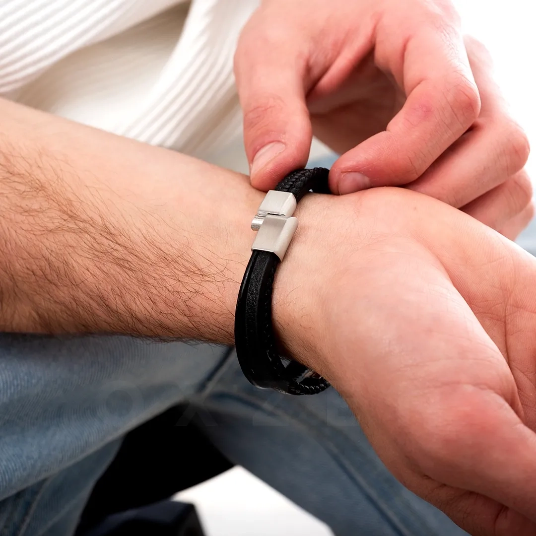 Βραχιόλι ατσάλινο με δέρμα μαύρο και κούμπωμα μαγνήτη