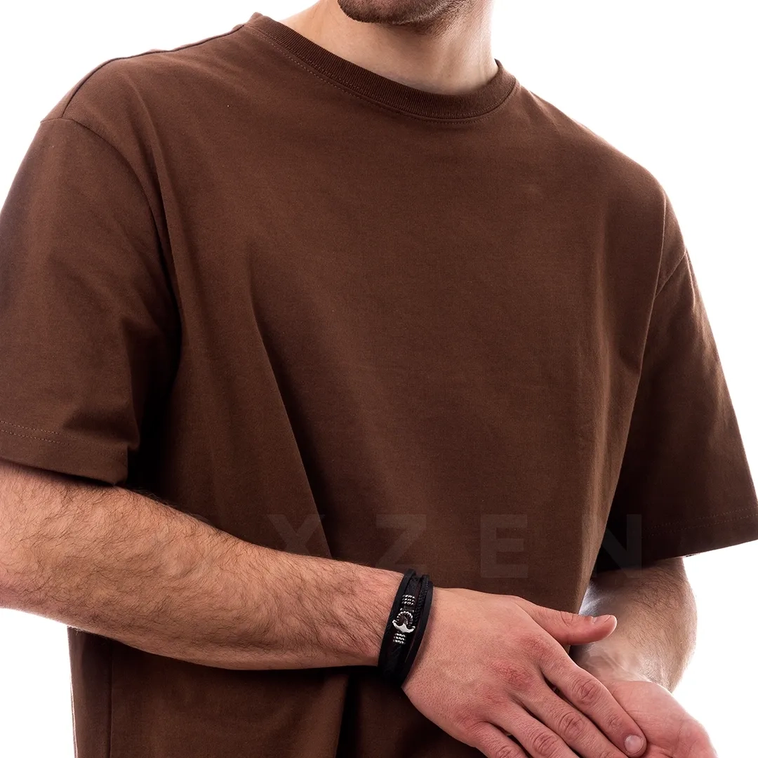 Βραχιόλι ατσάλινο με δέρμα μαύρο πενταπλό