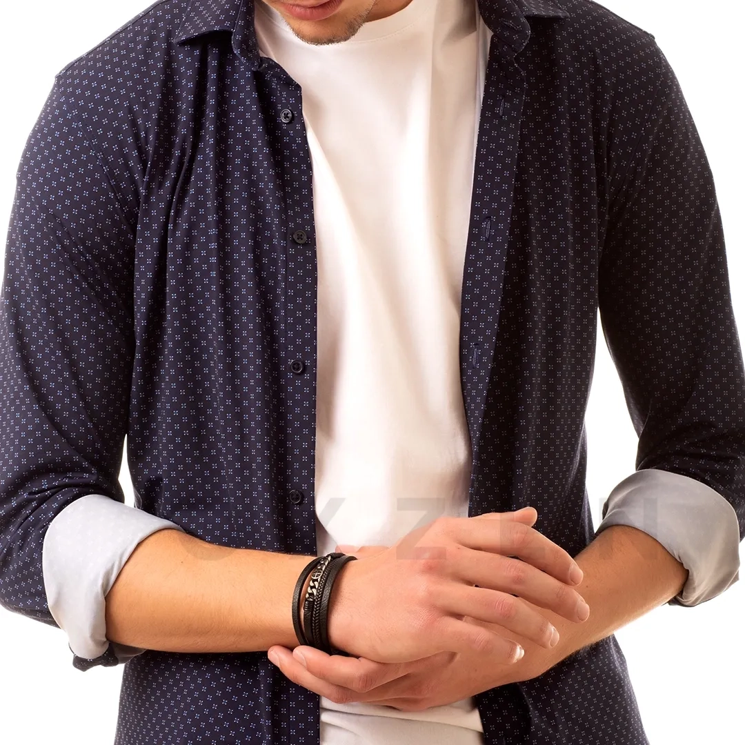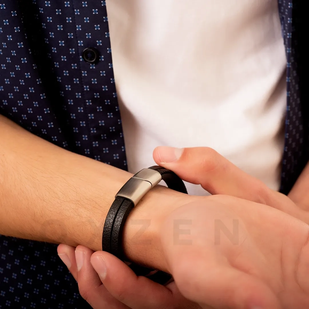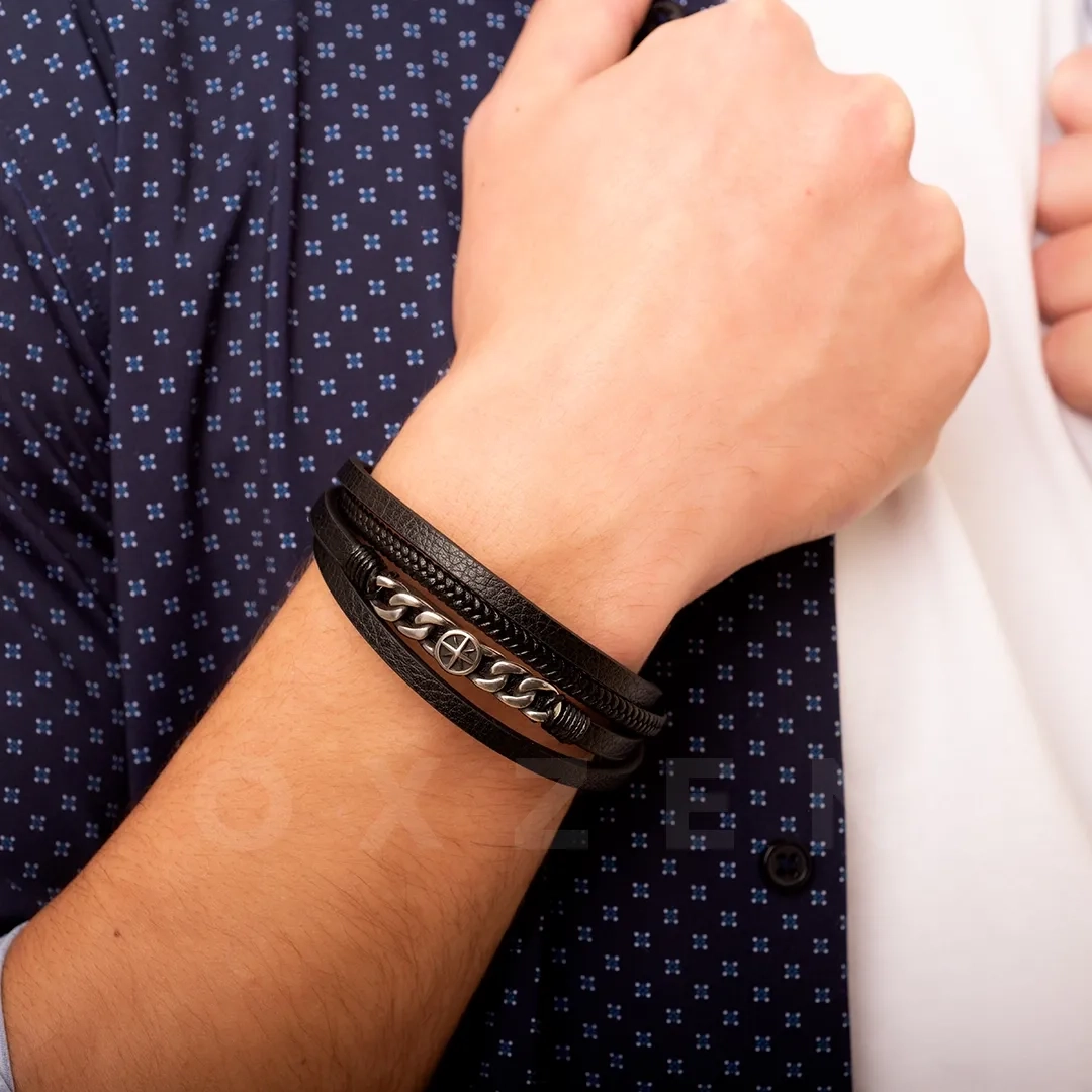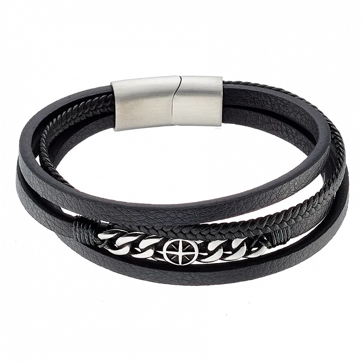 Βραχιόλι ανδρικό ατσάλινο με δέρμα τετραπλό