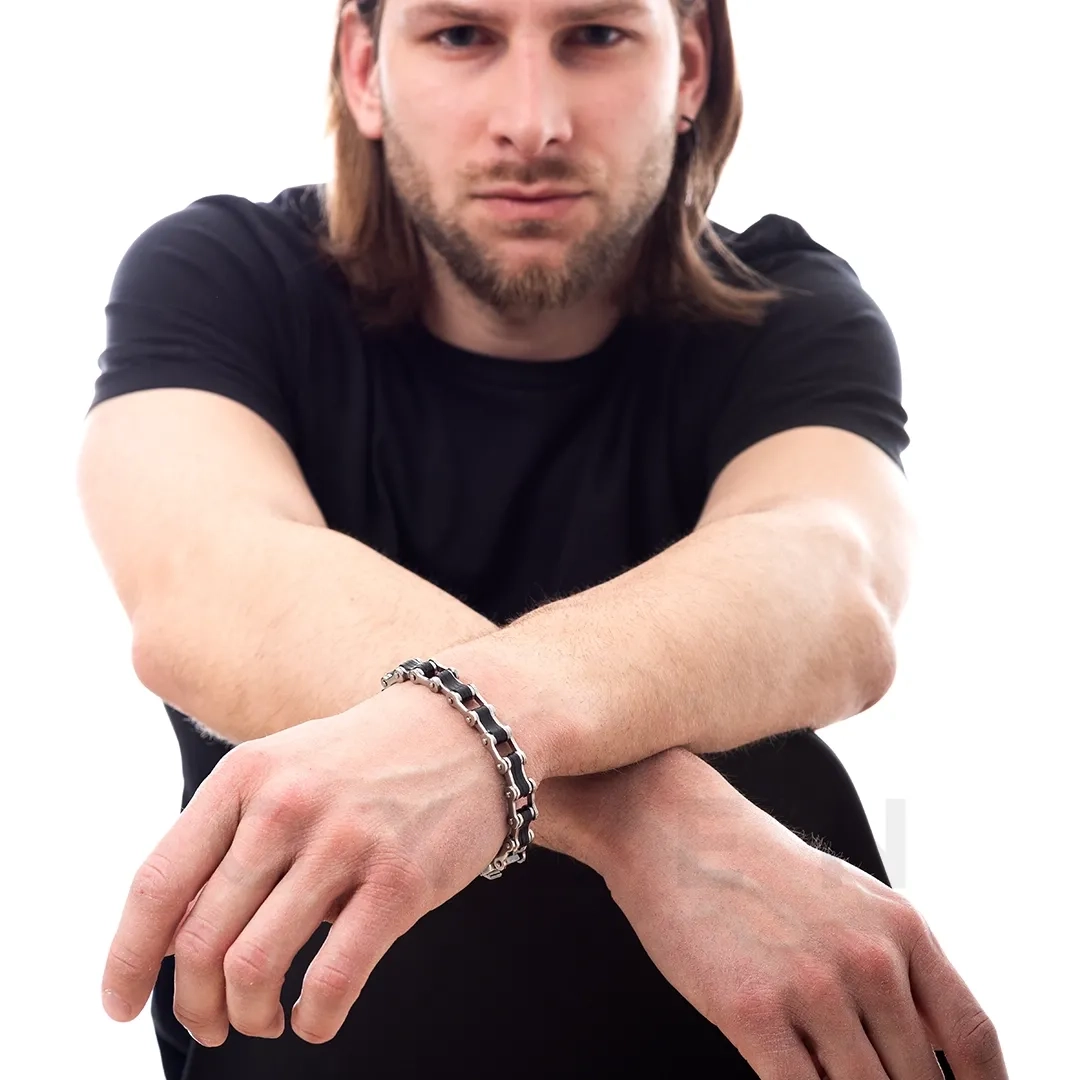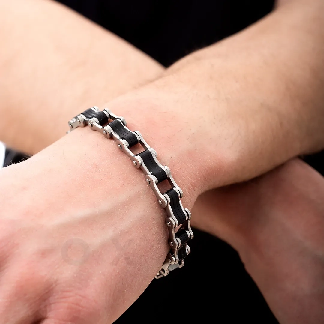 Βραχιόλι ατσάλι ανδρικό σε ασημί με μαύρο