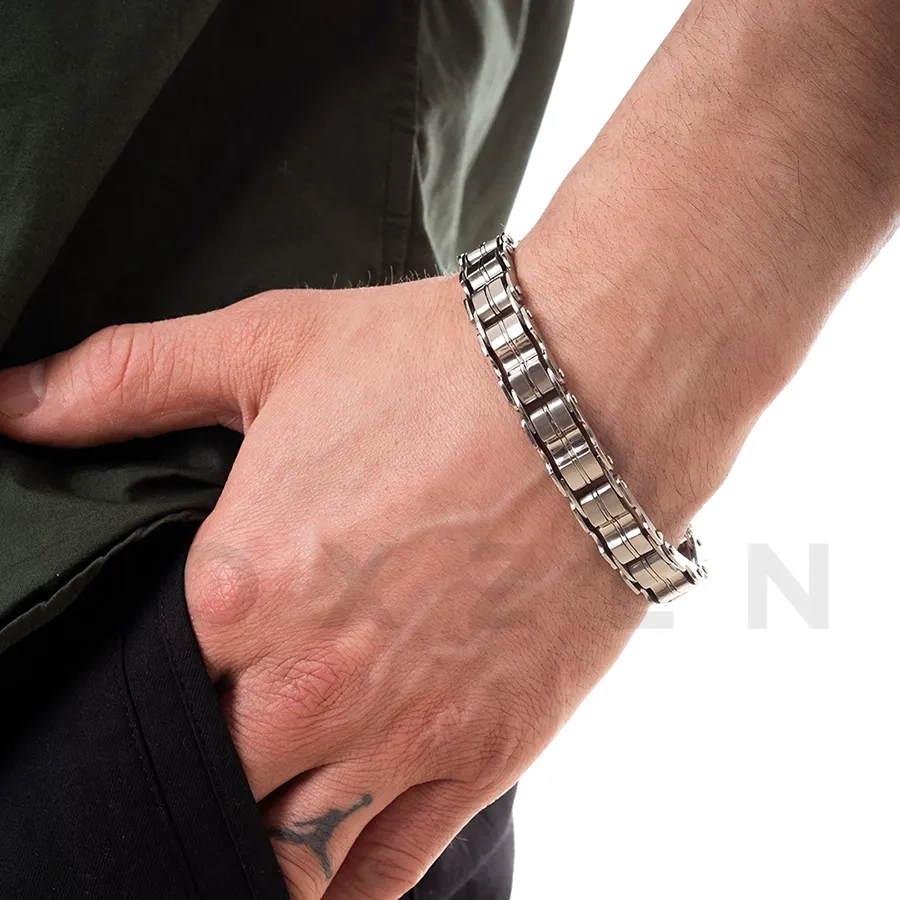Χειροπέδα ανδρική ατσάλι σε ασημί με μαύρο