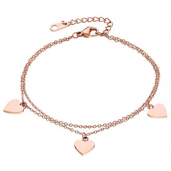 Βραχιόλι ατσάλινο διπλό με καρδούλες