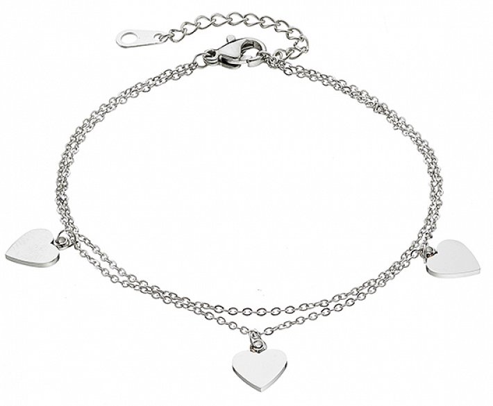 Βραχιόλι ατσάλινο διπλό με καρδούλες
