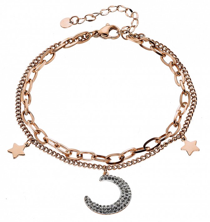 Βραχιόλι ατσάλινο διπλό με μισοφέγγαρο με κρύσταλλα cz
