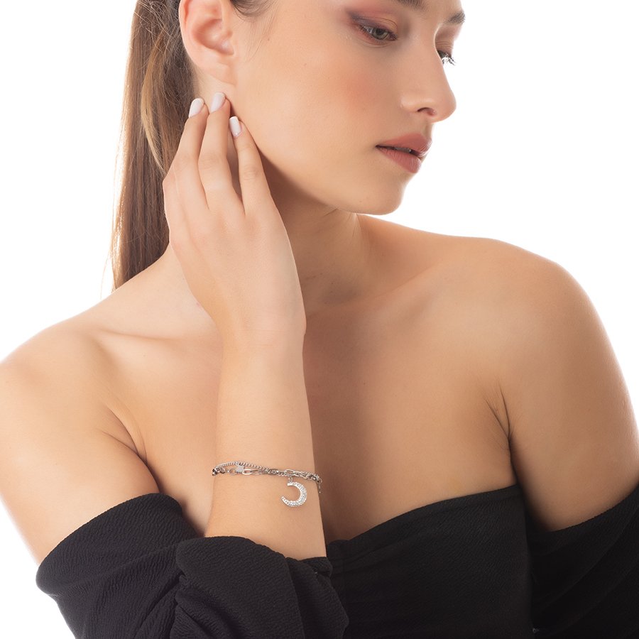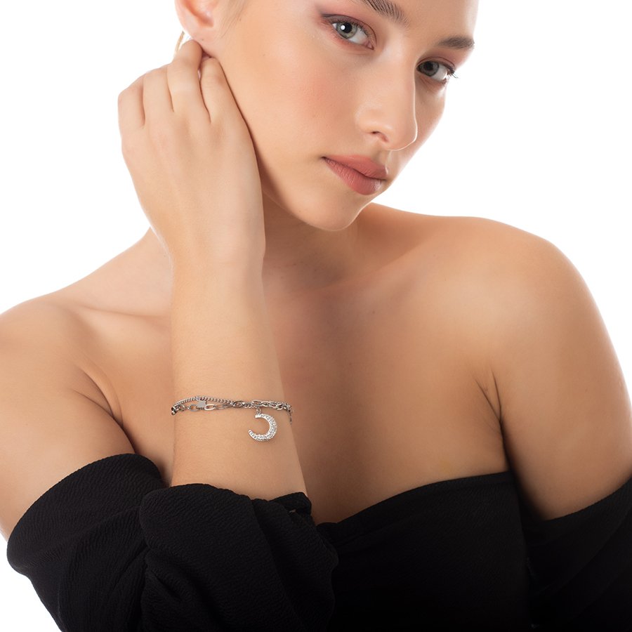Βραχιόλι ατσάλινο διπλό με μισοφέγγαρο με κρύσταλλα cz