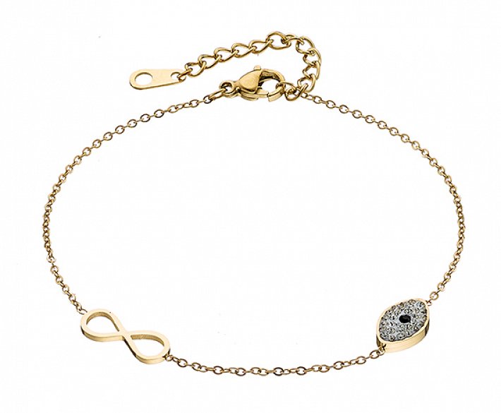 Βραχιόλι ατσάλινο ματάκι με κρύσταλλα cz