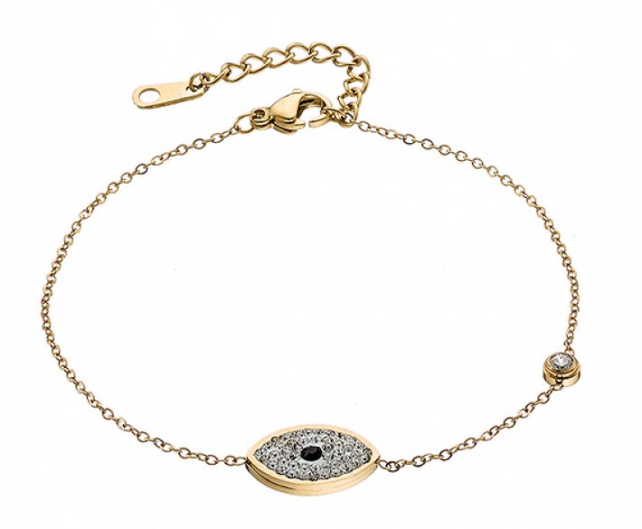 Βραχιόλι ατσάλινο ματάκι και άπειρο με κρύσταλλα cz