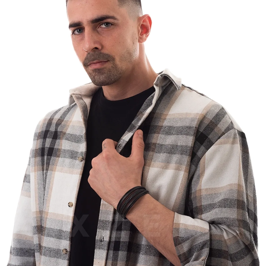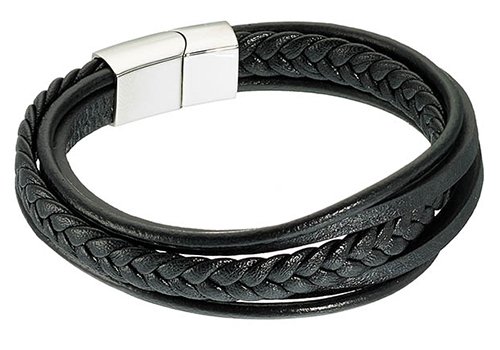 Βραχιόλι ατσάλινο με δέρμα μαύρο πενταπλό