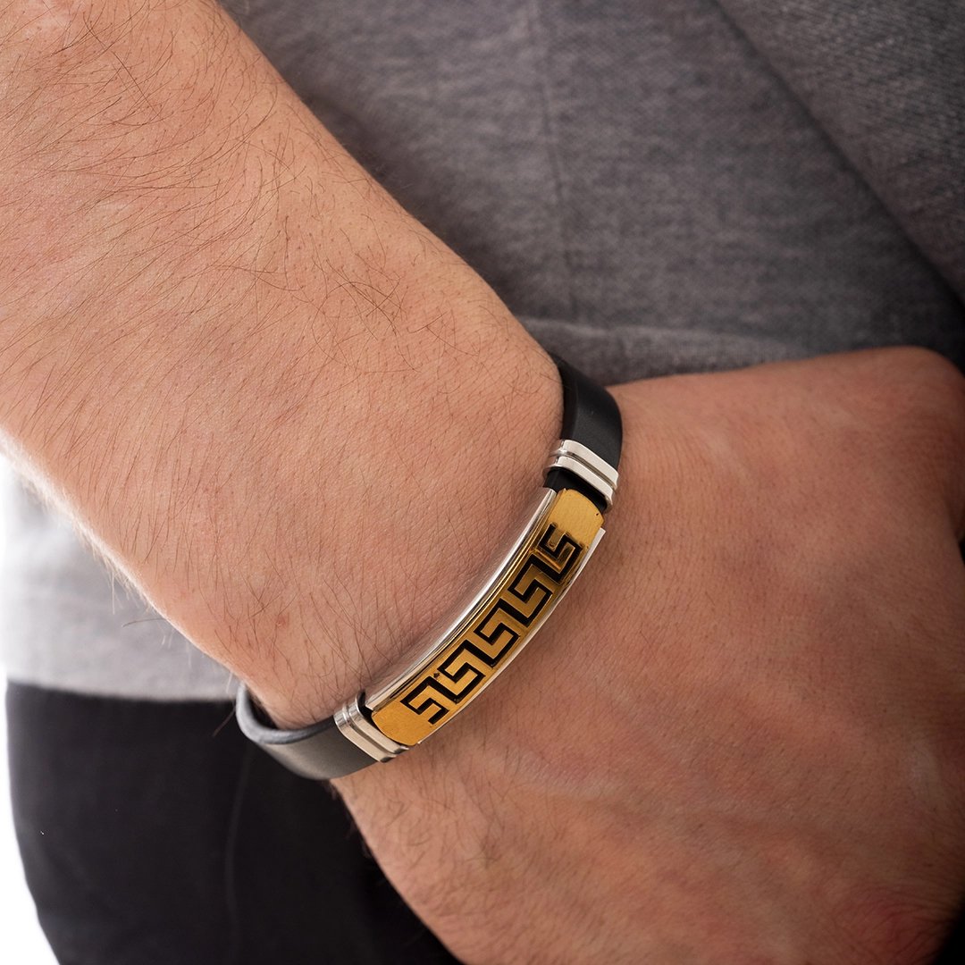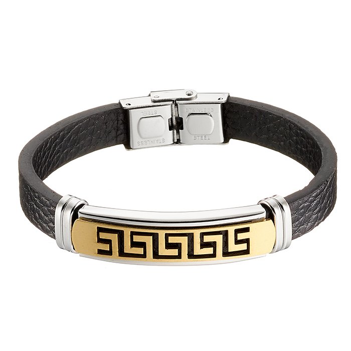 Βραχιόλι ατσάλινο με δέρμα PU και μαίανδρο
