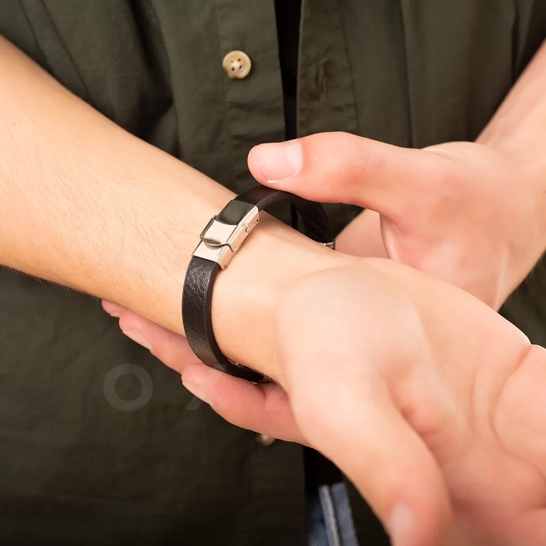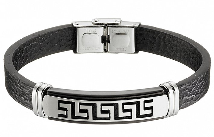 Βραχιόλι ατσάλινο δέρμα PU με πλακέτα