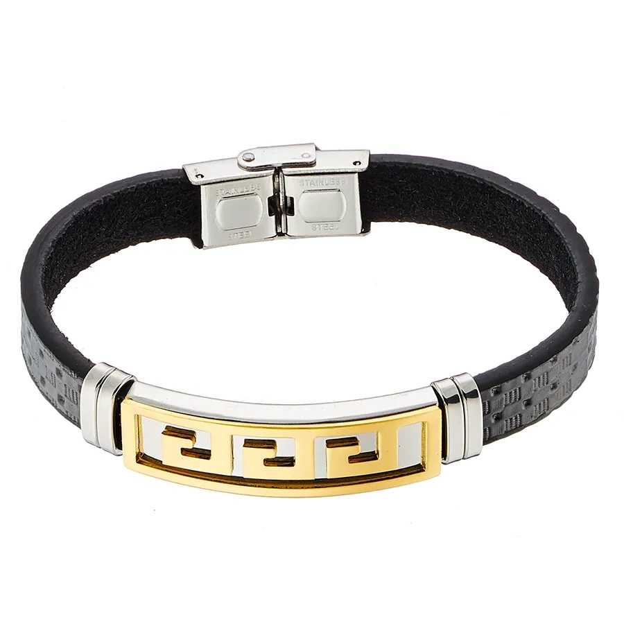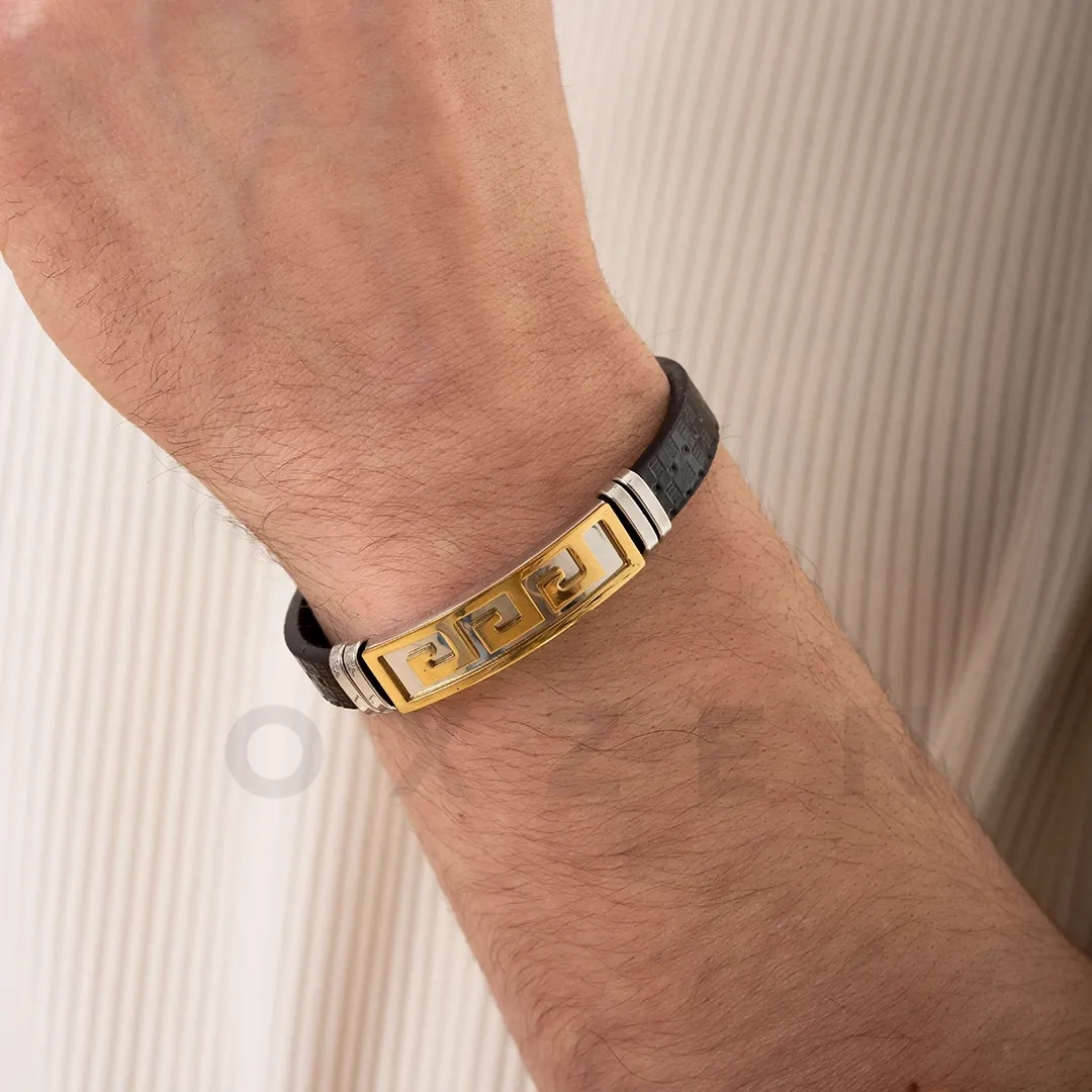 Βραχιόλι ατσάλινο με δέρμα PU και μαίανδρο