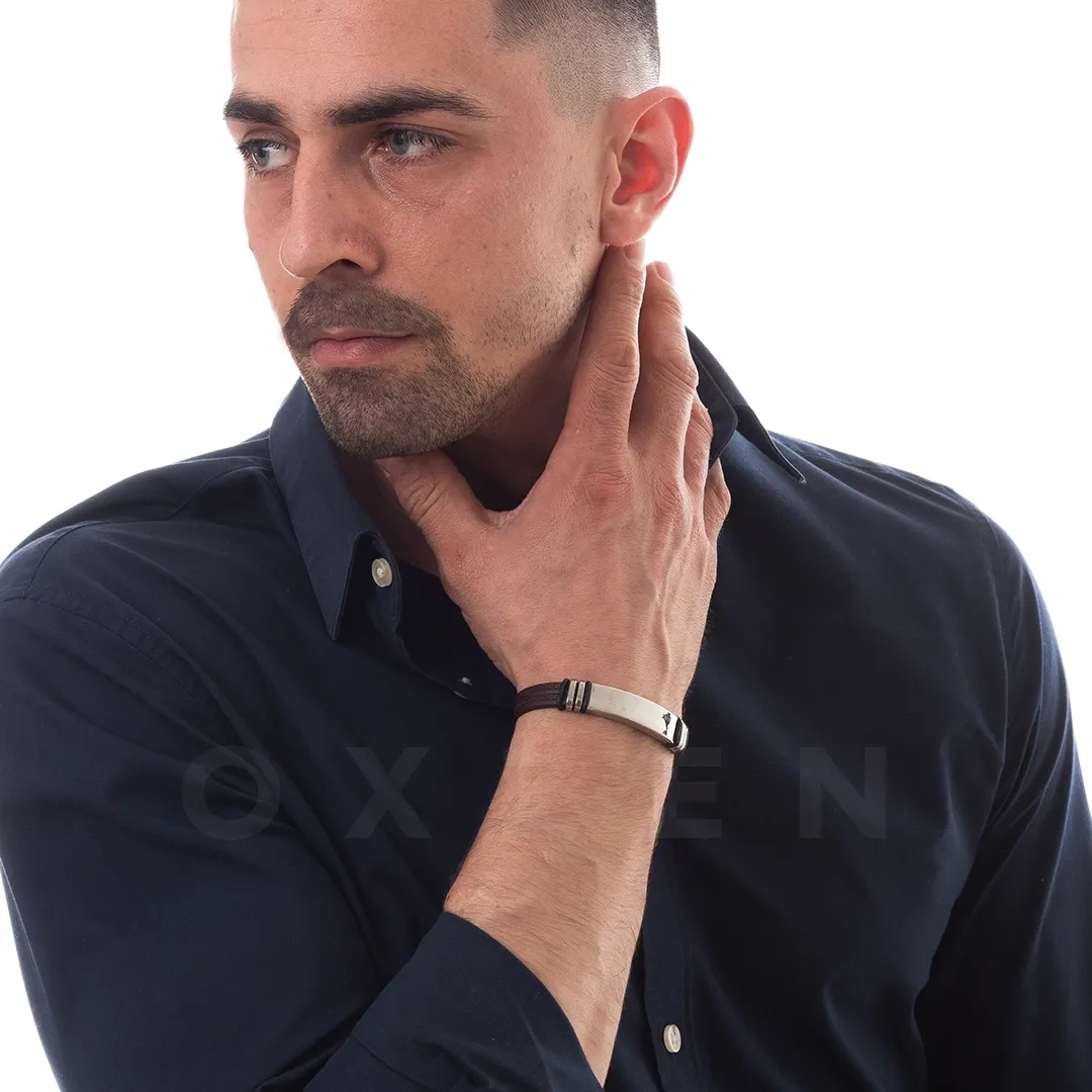 Βραχιόλι ατσάλινο δέρμα PU με πλακέτα