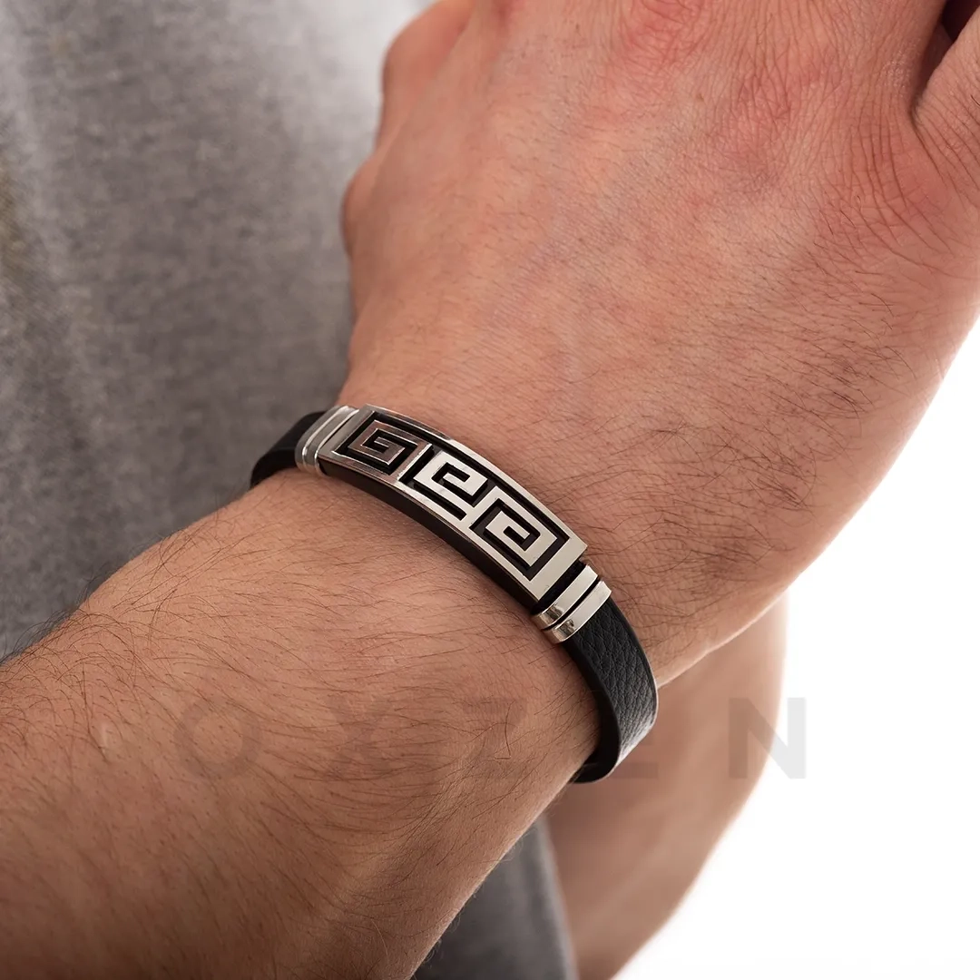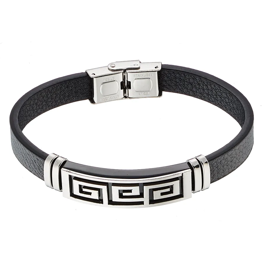 Βραχιόλι ατσάλινο με δέρμα PU και μαίανδρο