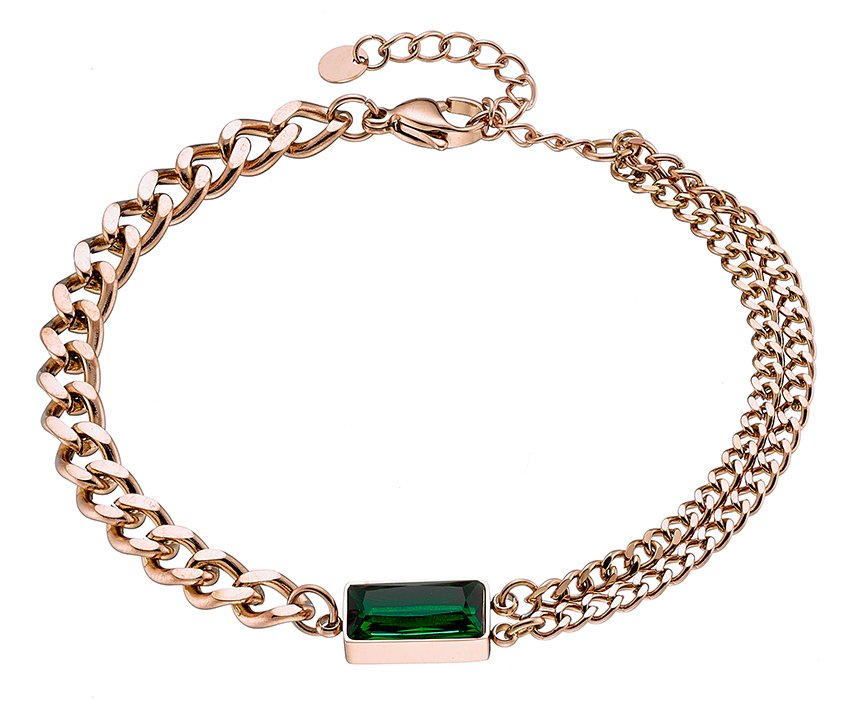 Βραχιόλι ατσάλινο με διπλή αλυσίδα και πράσινη πέτρα ζιργκόν