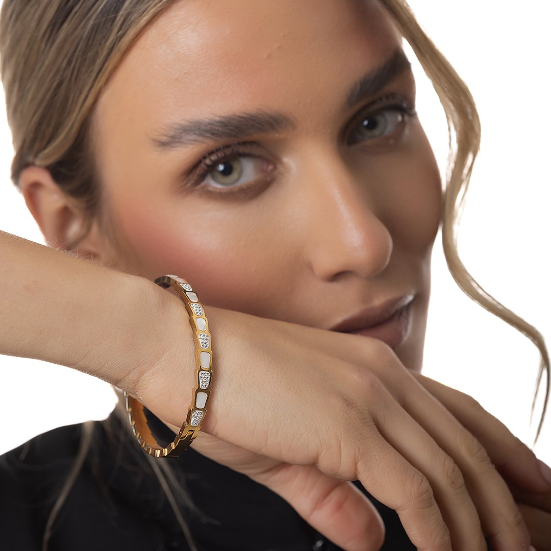 Βραχιόλι γυναικείο από ανοξείδωτο ατσάλι χειροπέδα με φίλντισι
