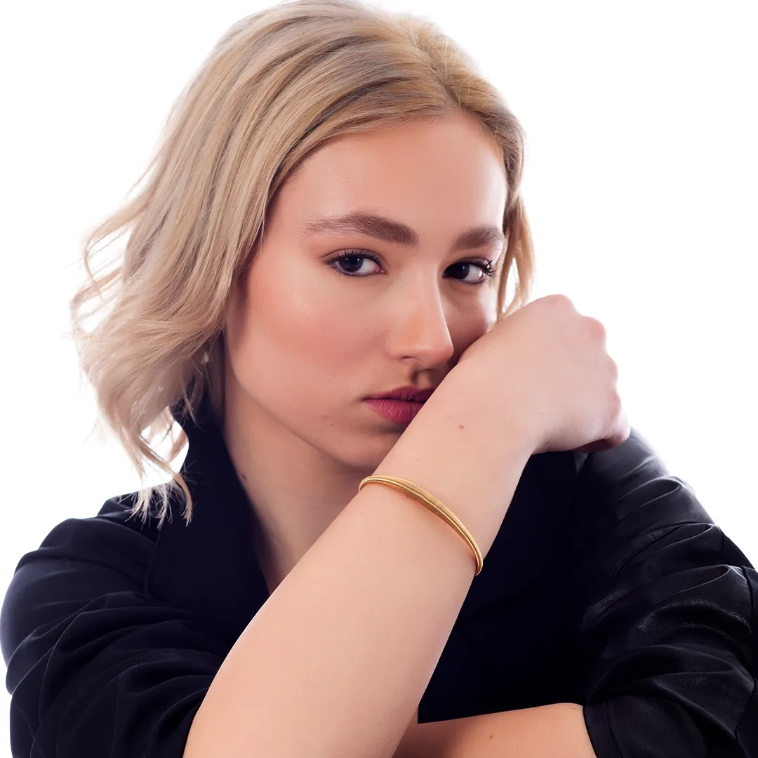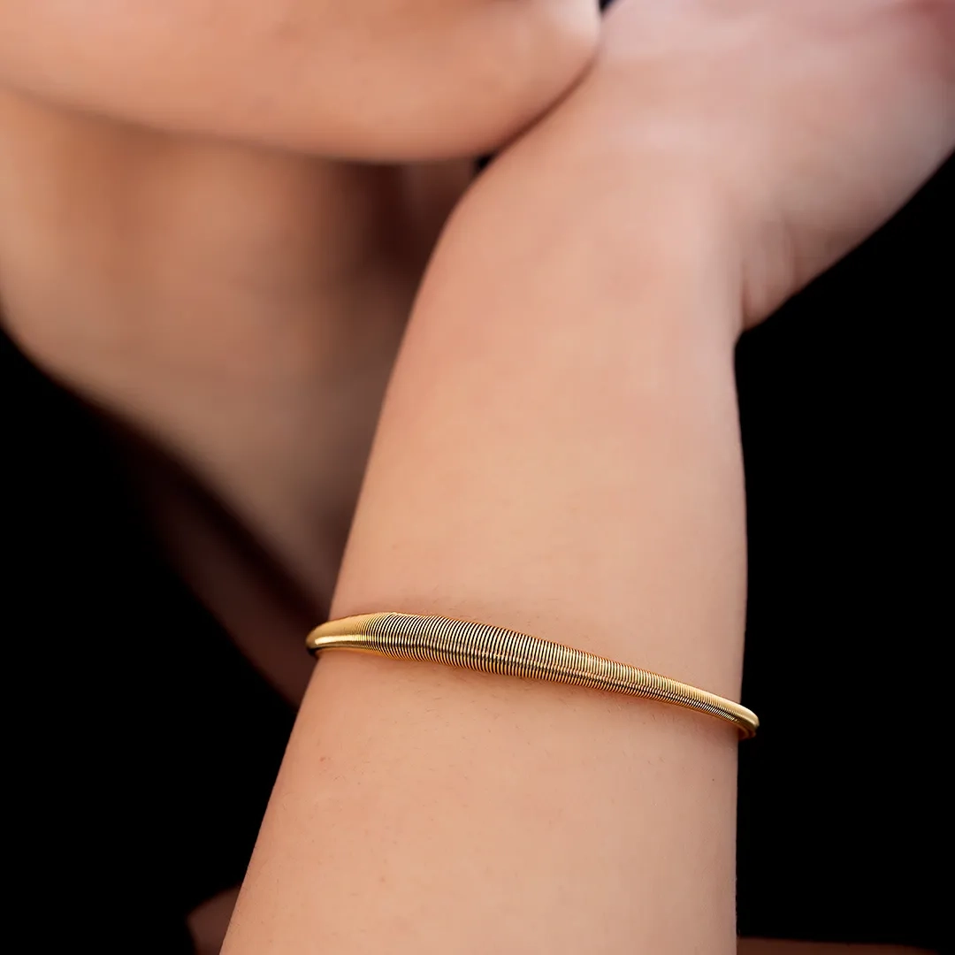Βραχιόλι γυναικείο από ανοξείδωτο ατσάλι χειροπέδα σπείρα με ματ φινίρισμα
