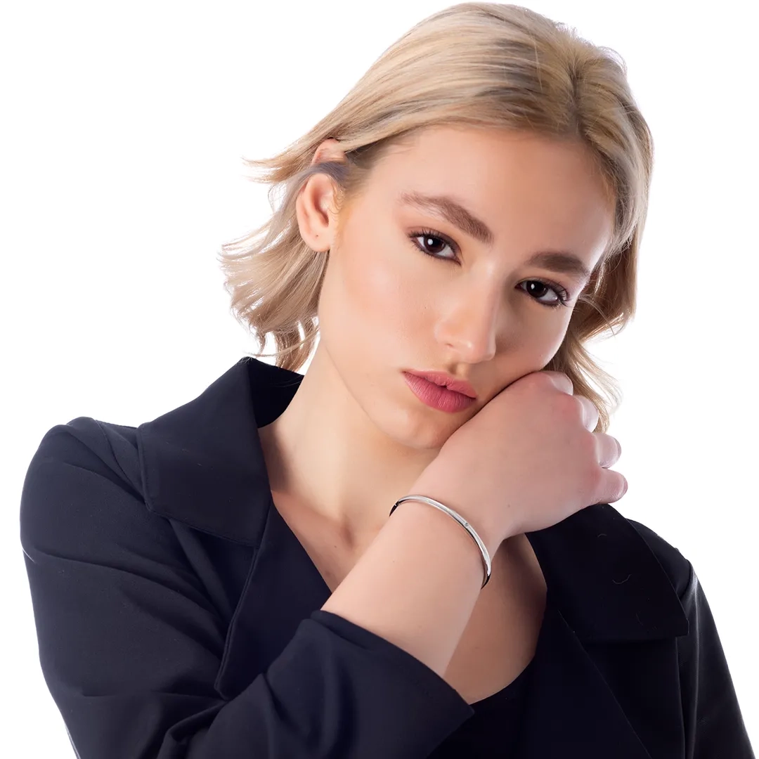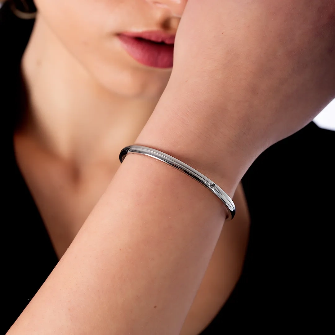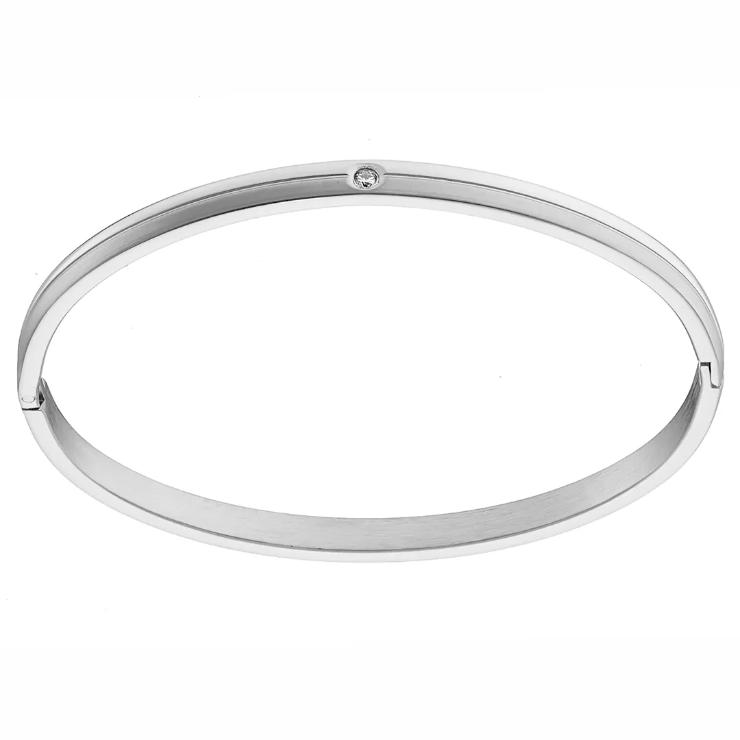 Βραχιόλι γυναικείο από ανοξείδωτο ατσάλι με λευκό ζιργκόν χειροπέδα με κούμπωμα