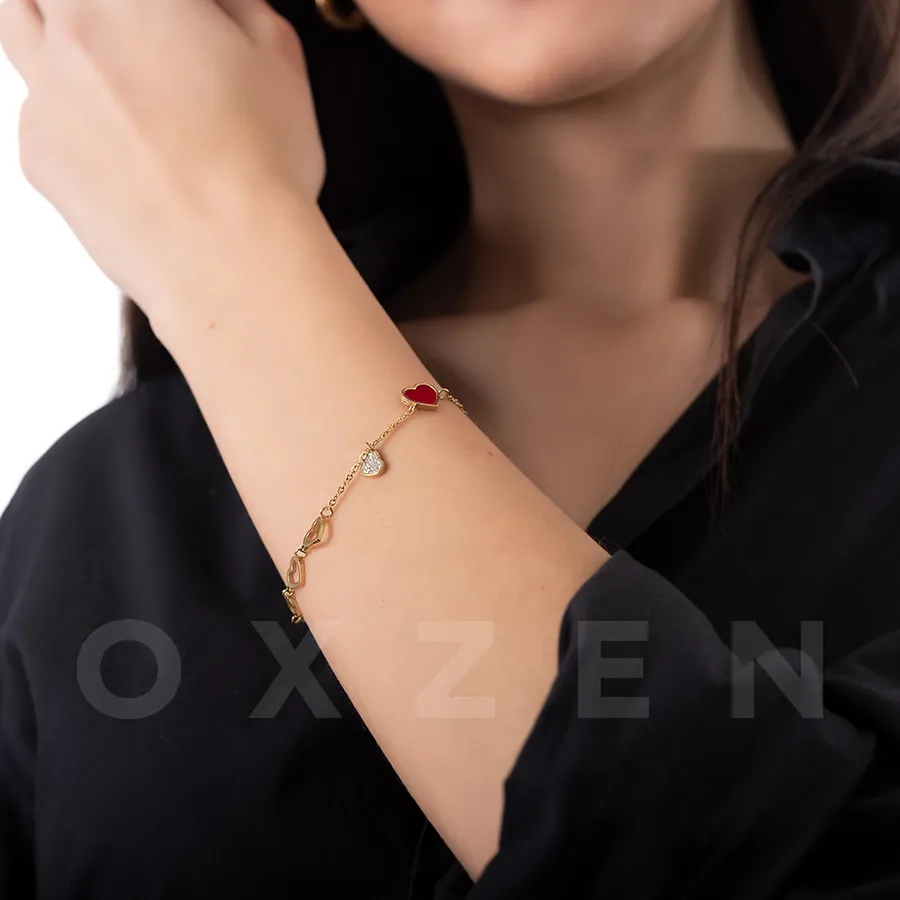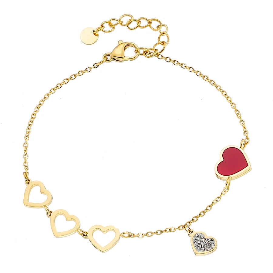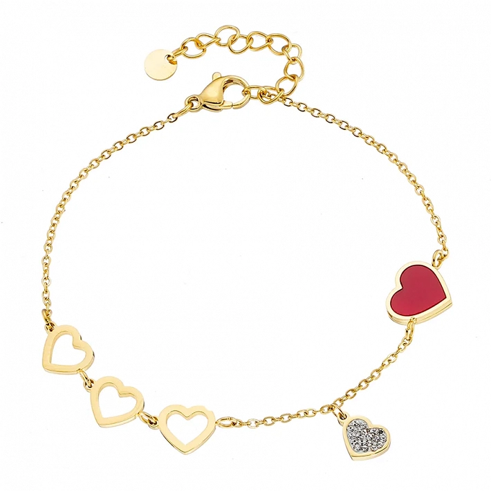 Βραχιόλι γυναικείο ατσάλινο με κόκκινη καρδιά