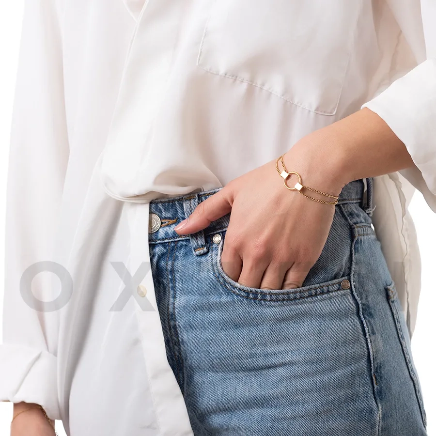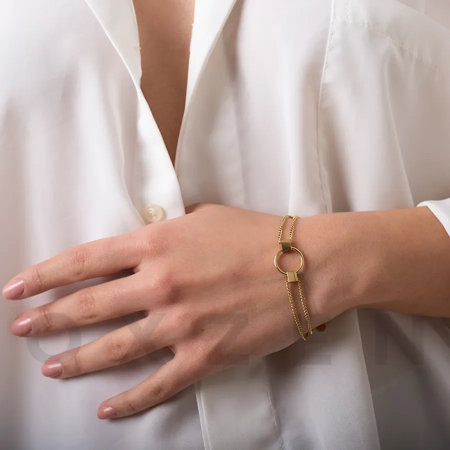 Βραχιόλι γυναικείο ατσάλινο, με κρίκο και αλυσίδες