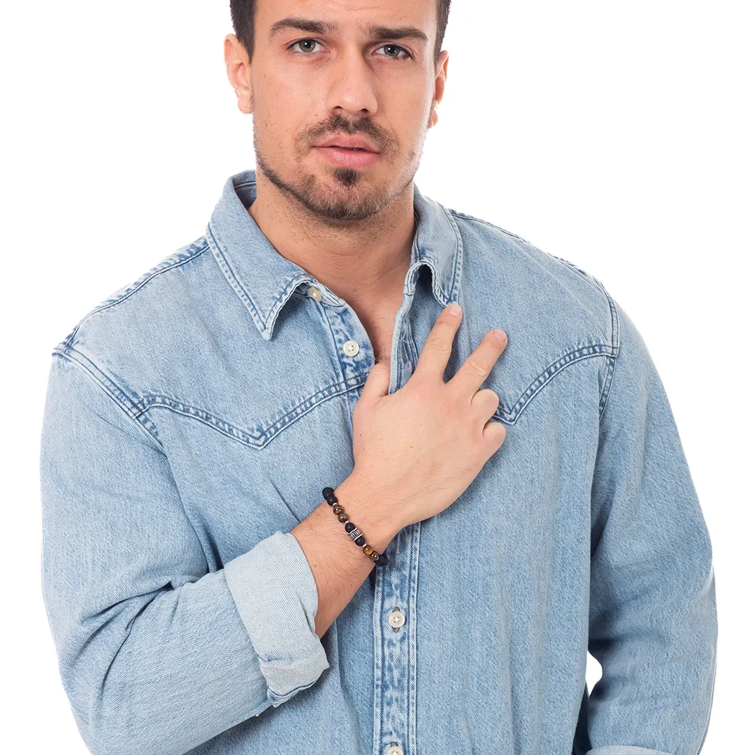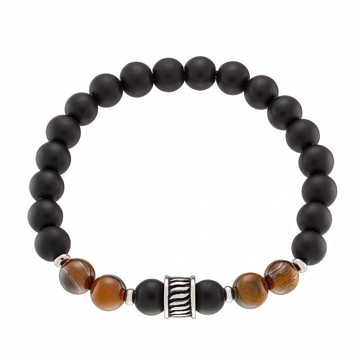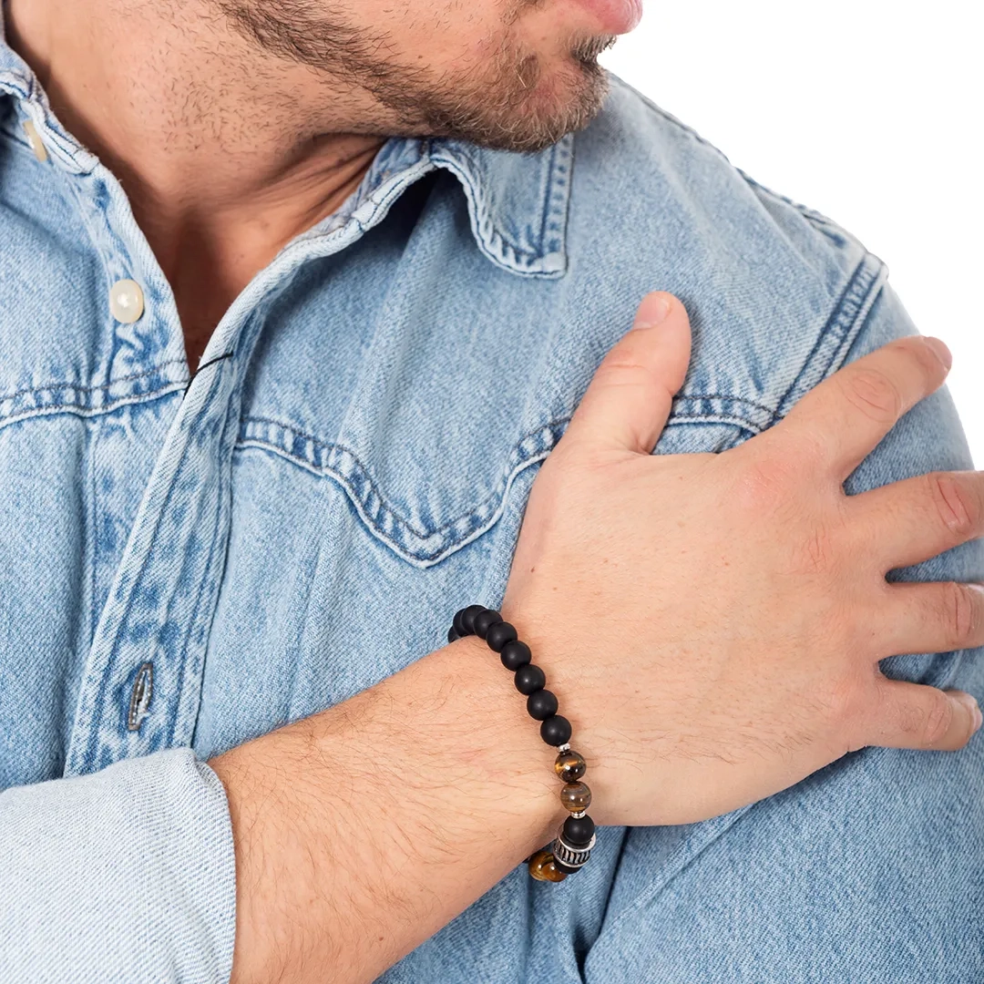 Βραχιόλι με Tiger's Eye stone και μαύρες χάντρες 8mm