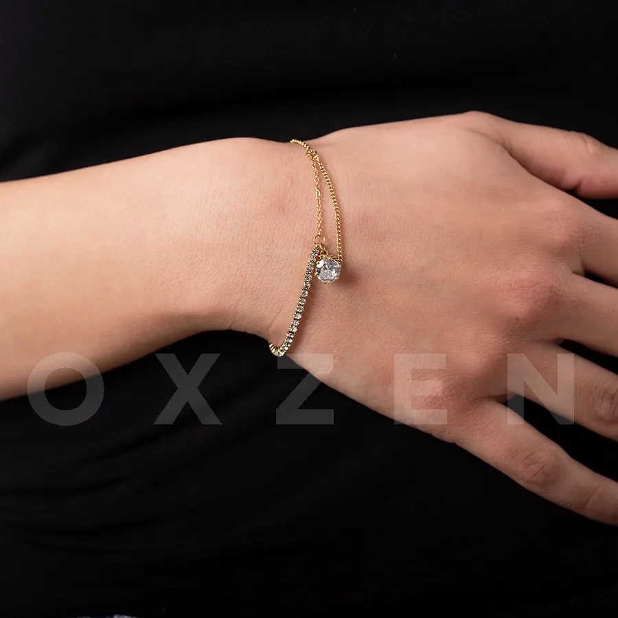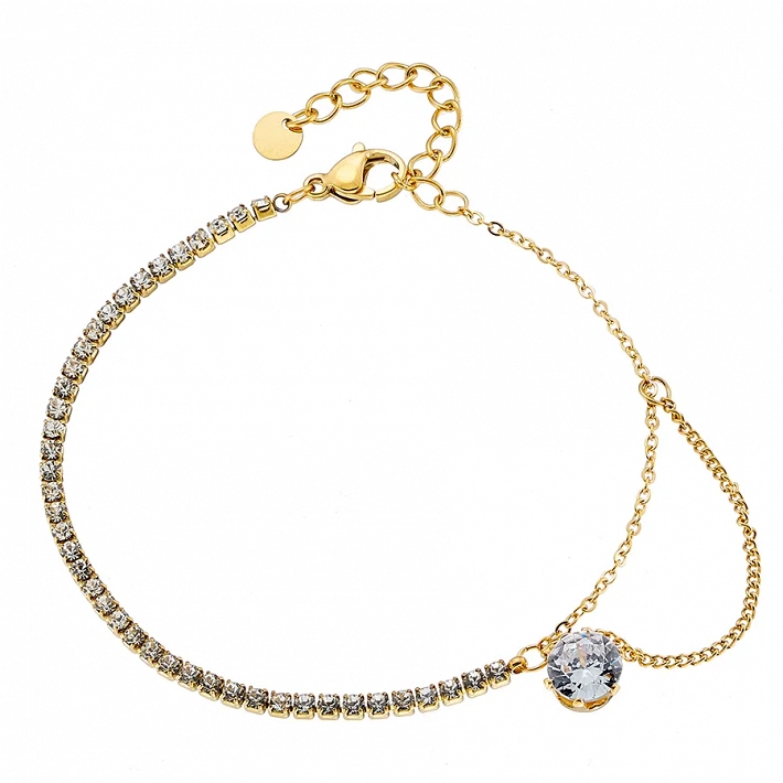 Βραχιόλι ριβιέρα ατσάλινη με ένα μεγάλο λευκό ζιργκόν